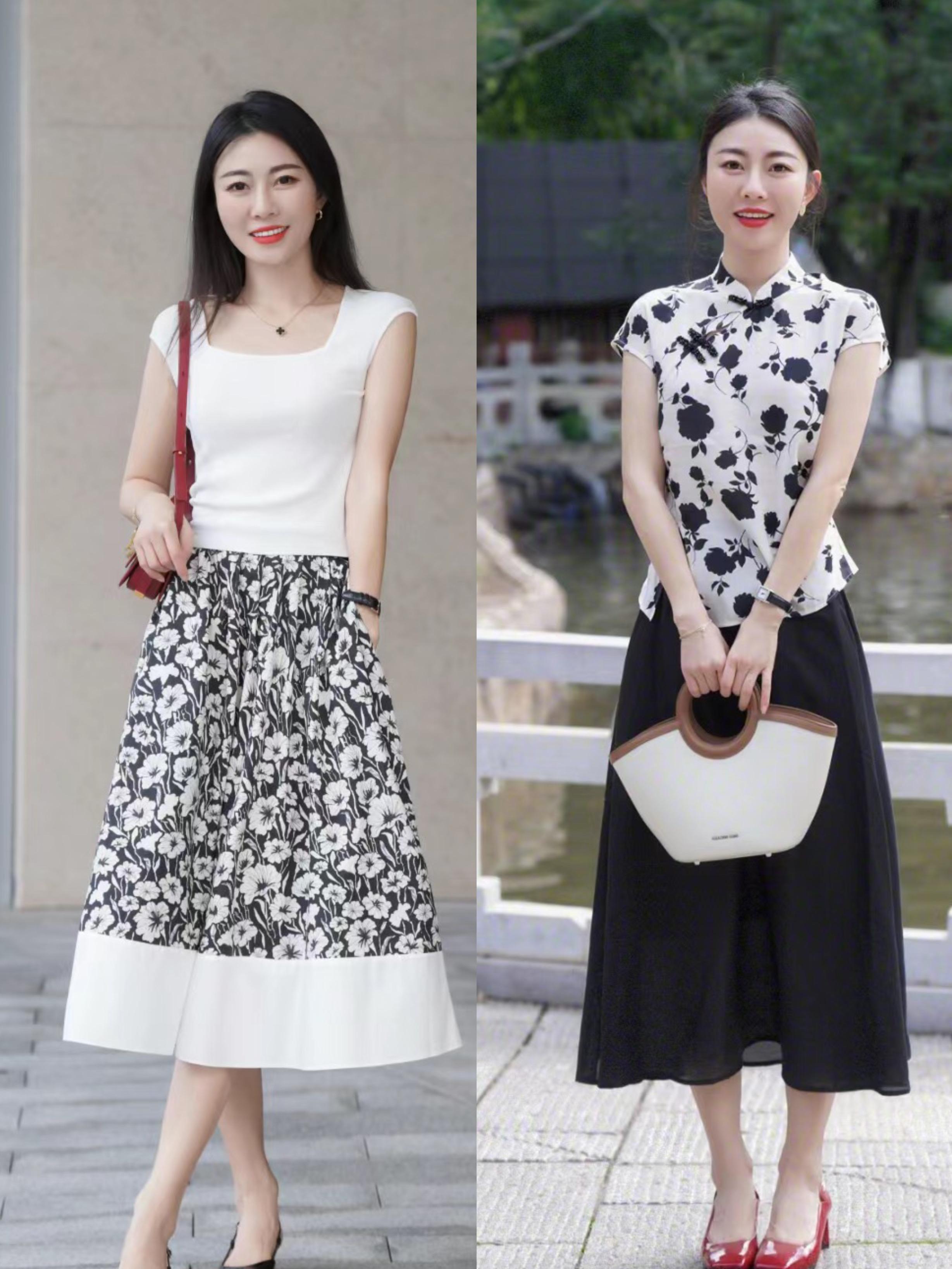 不管是基礎襯衫+國風半身裙,還是國風開衫+基礎款吊帶裙,都屬於一種現代改良版穿搭,既擁有國風的素雅、也具備了新時代的清爽。