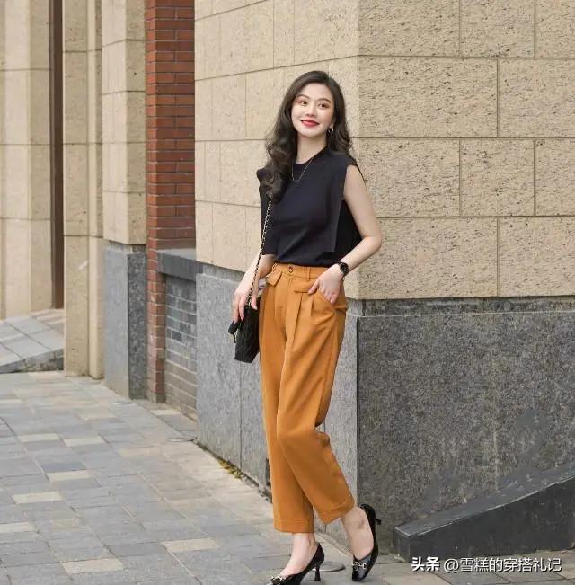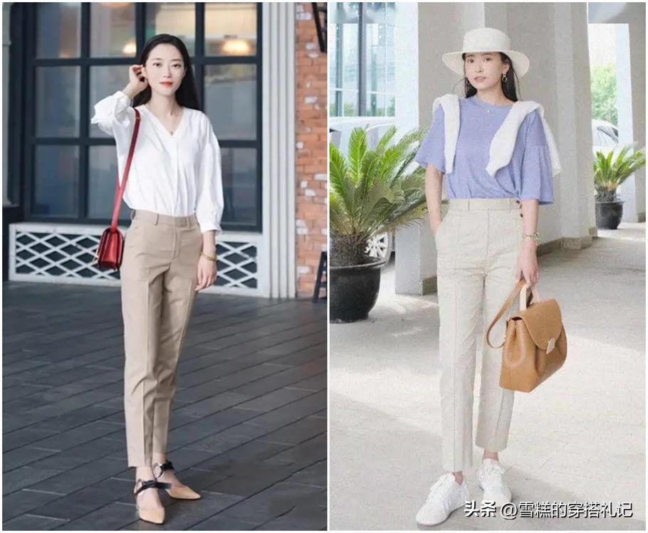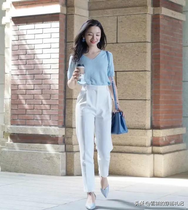 選淺色煙管褲時最好選擇褲型松,且材質也軟的,這樣穿上身鬆弛有範,並且也清涼舒適,最重要的是遮肉效果會更好,即使是淺色也完全不用擔心顯胖;