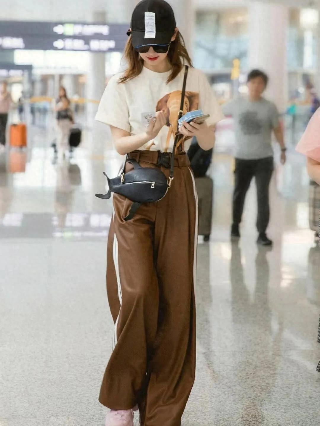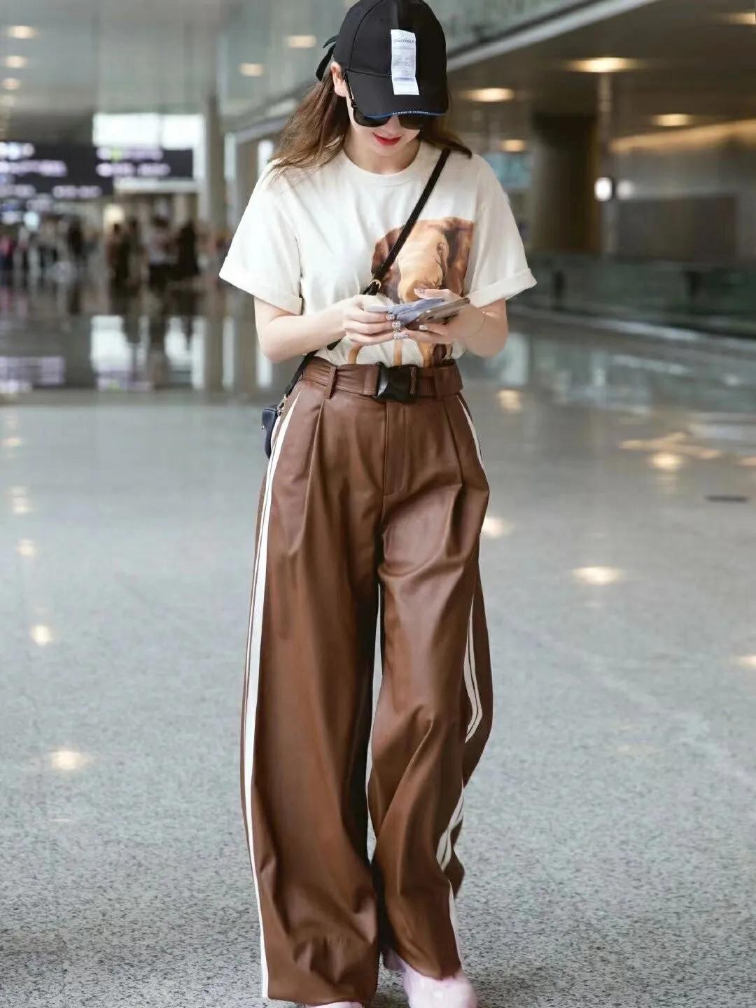 戚薇帶火了“美拉德”穿法:T恤+闊腿褲+運動鞋,時髦洋氣又減齡