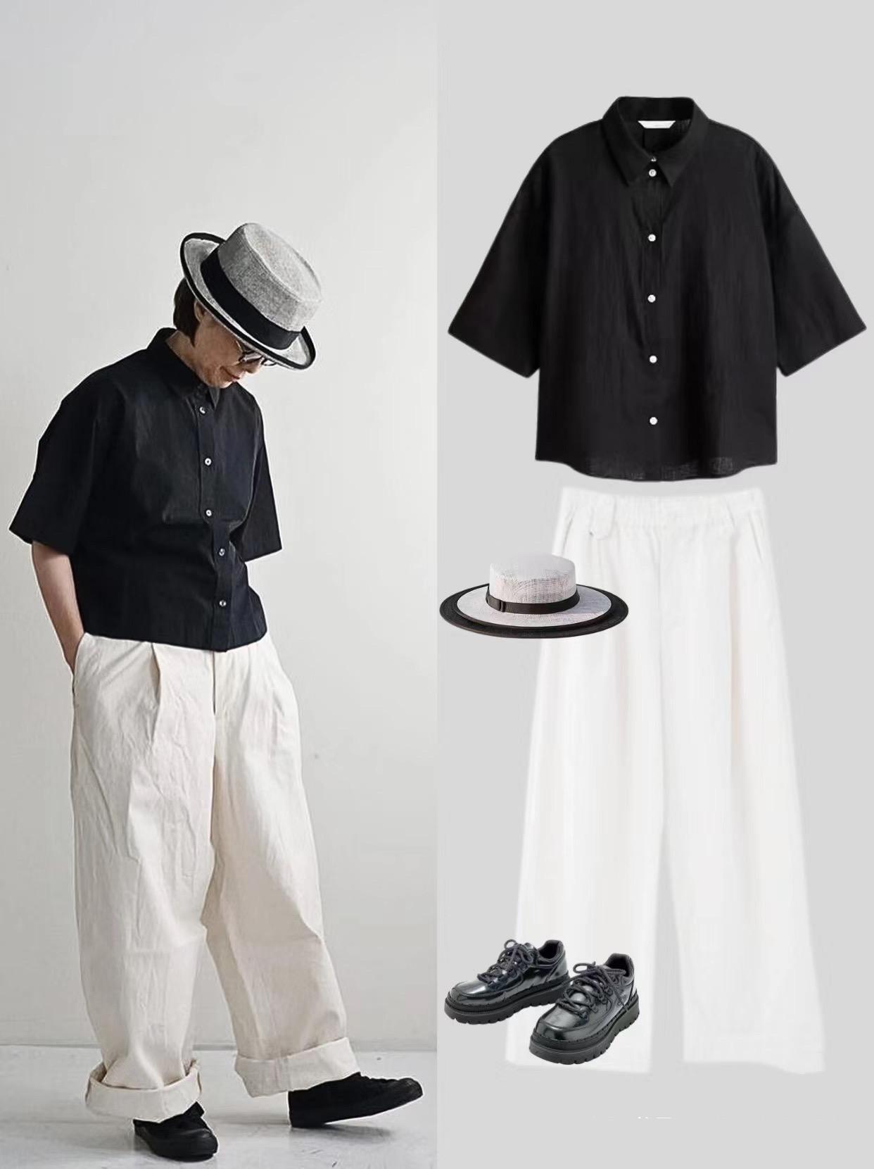 如果上半身稍微胖一點,可以嘗試黑色襯衫的搭配。黑色襯衫配白色直筒褲,簡潔乾淨、給人一種很舒適自在的美。