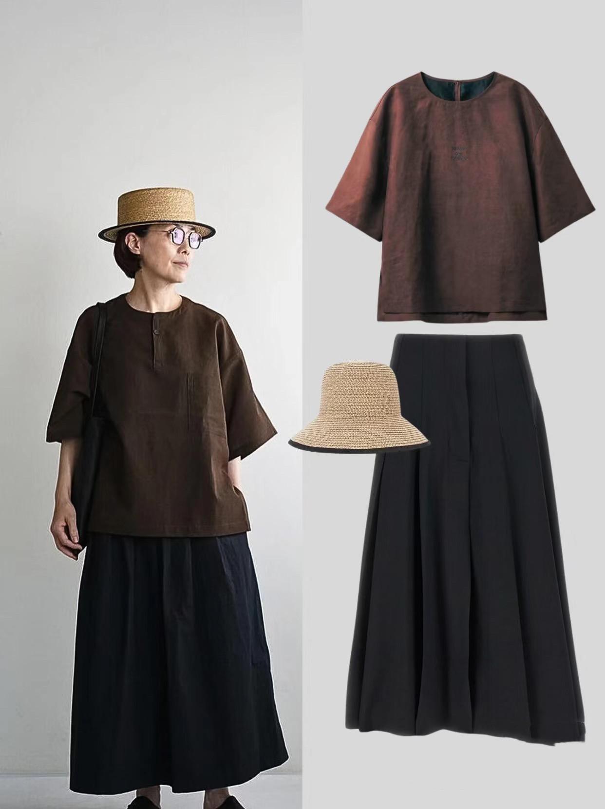 慵懶舒適、文藝嫺靜,50+女性的穿搭,可以更加平和一點。寬鬆的五分袖T恤,搭配高腰的A字形傘裙,不需要塞衣角,自然又慵懶。