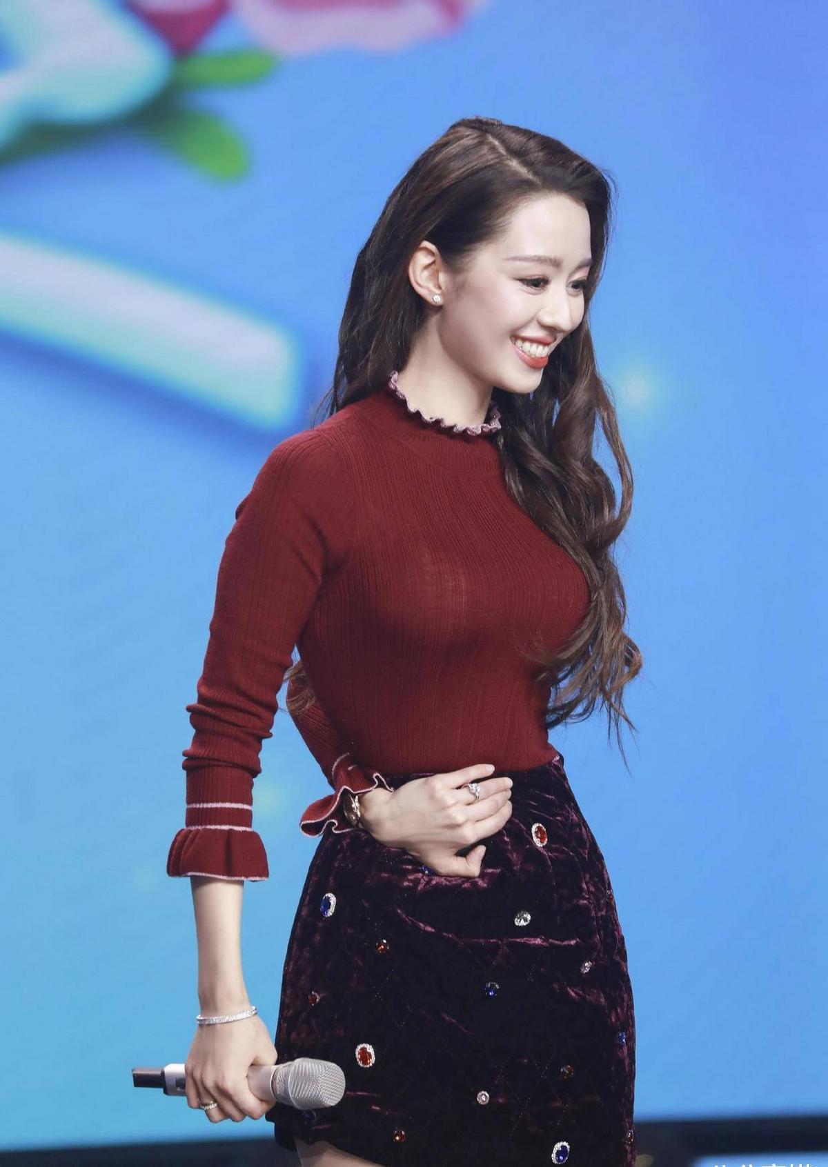 她在下面搭配了一條超短裙,上面搭配的是酒紅色的修身款上衣,自信將好身材給展現出來。