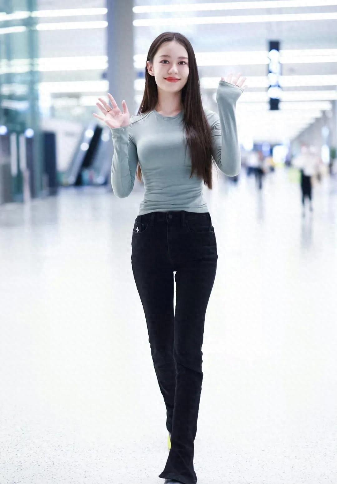 不過吉娜在穿衣這一塊,倒不是很時尚,甚至有點“土味”,她喜歡穿着打底衫走機場。沒想到這樣土味的造型,在吉娜的演繹下,竟然可以形成一種獨特的風格,讓人移不開眼睛。