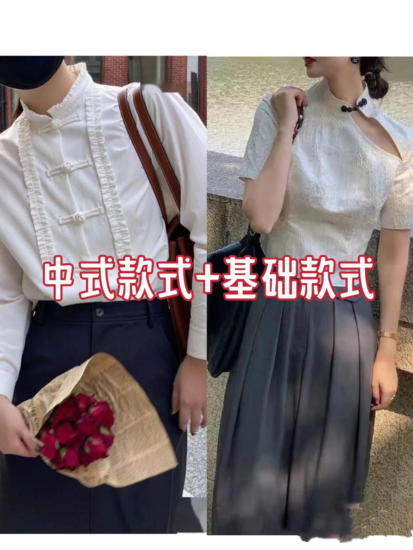 比如中式元素的襯衫,來搭配基礎款的半身裙,就會顯的更加休閒時尚一點。百褶半身裙、傘裙,都可以搭配中式元素的襯衫,黑白配也經典耐看。