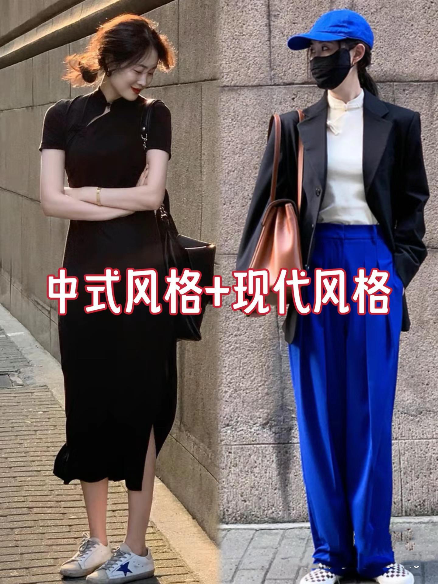 比如黑色的改良版旗袍裙,配一雙運動風的板鞋,輕便舒適又弱化年齡感。這種黑色改良版旗袍,設計感滿滿,也洋氣耐看。