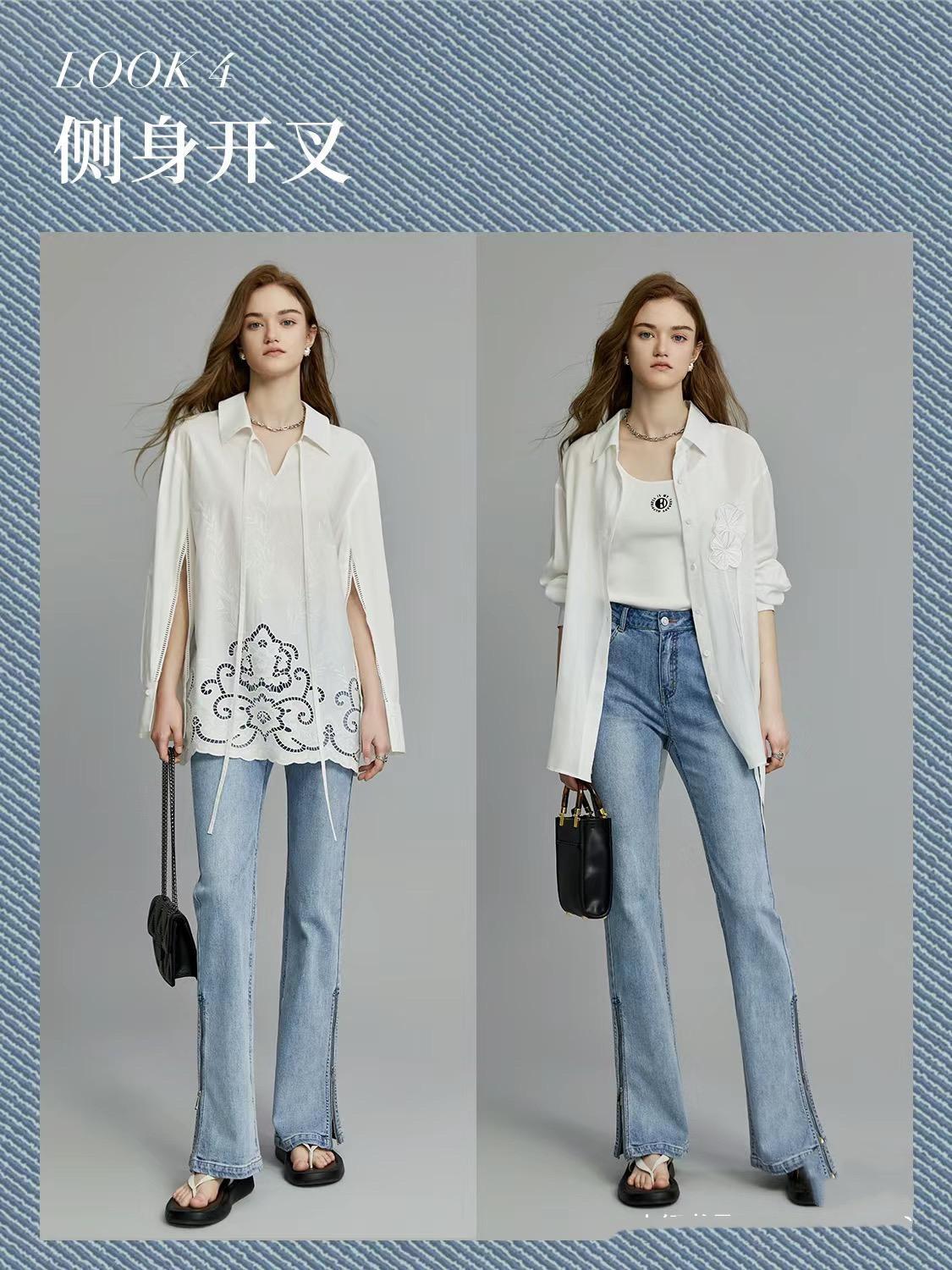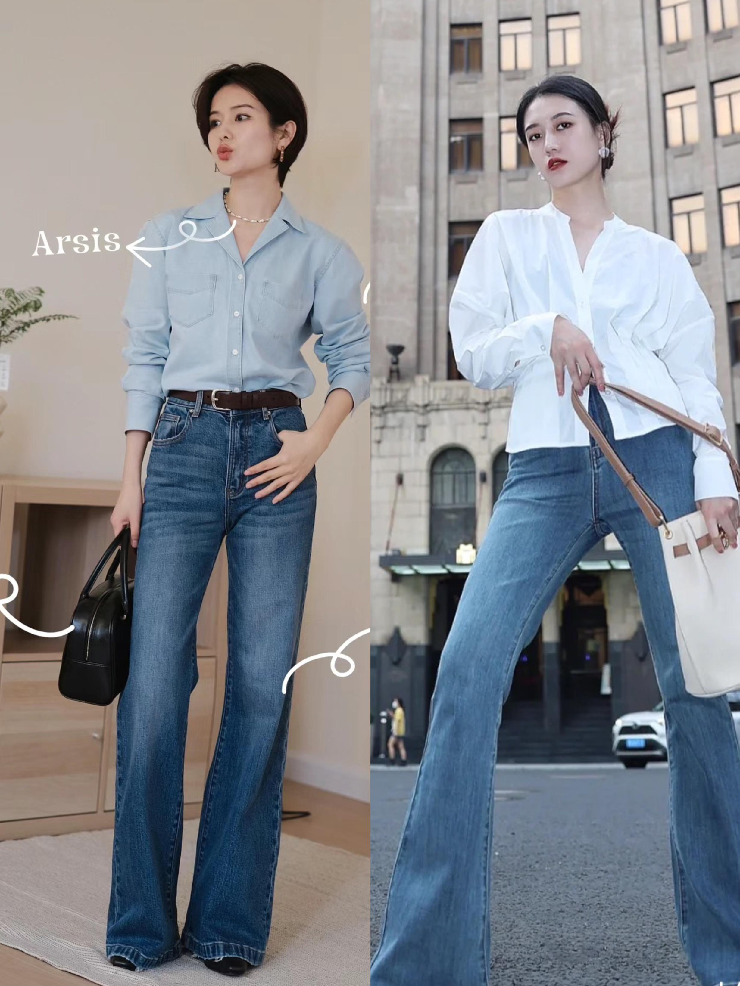 清爽的白襯衫,配上高腰微微喇牛仔褲,簡單清爽、帶着腔調感。