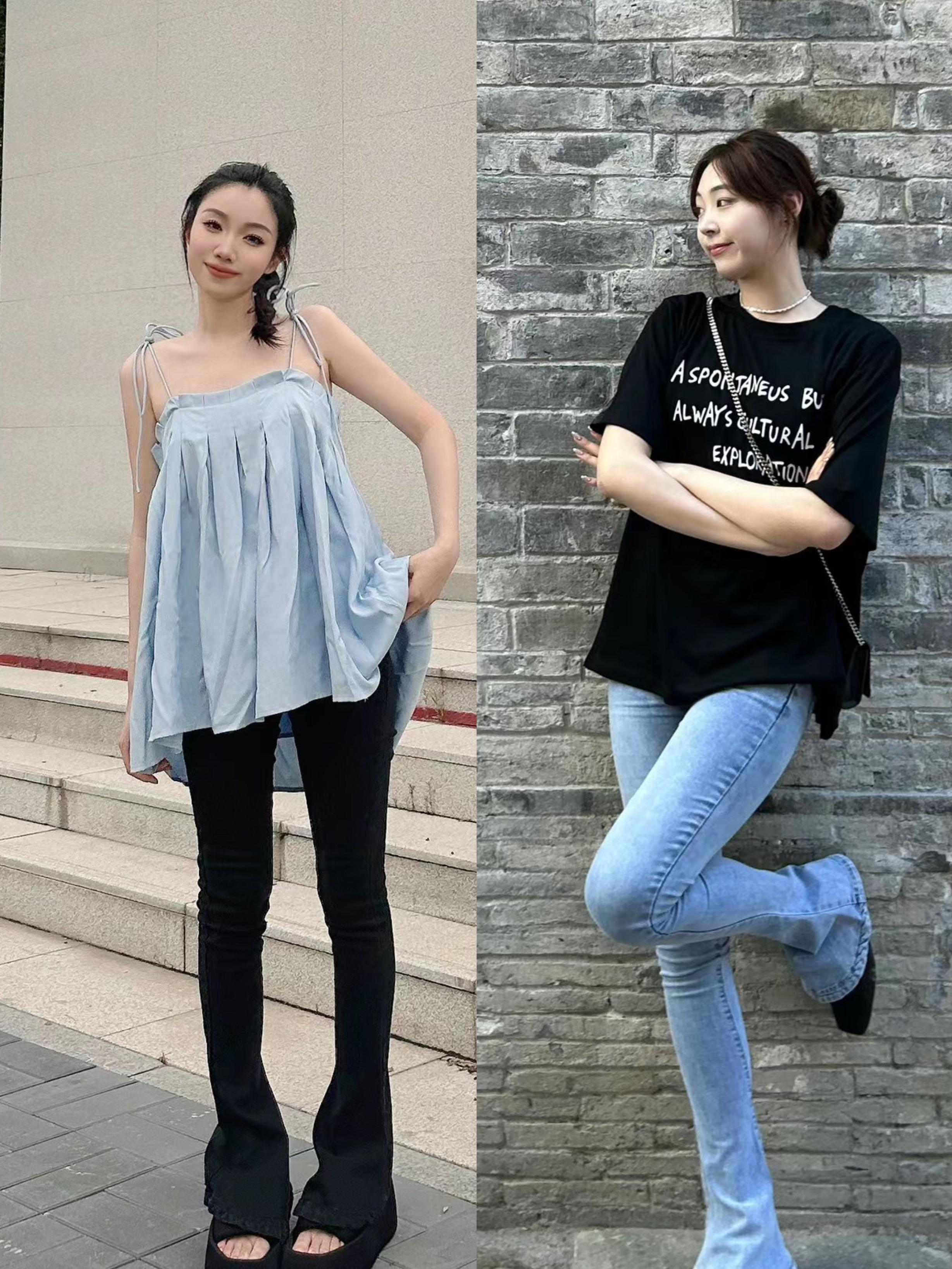 小個子選擇馬蹄褲,一定要選擇合身的款式。