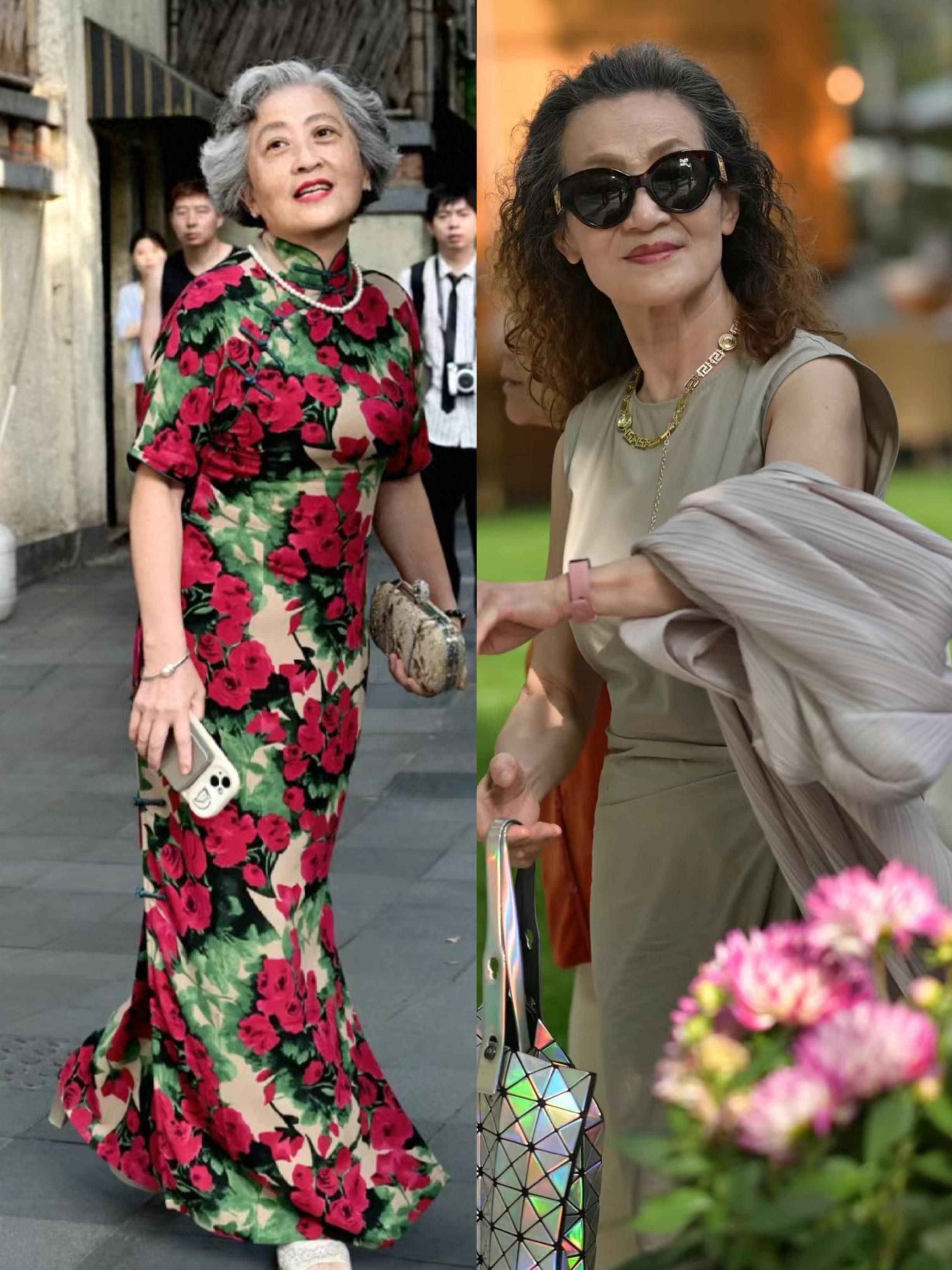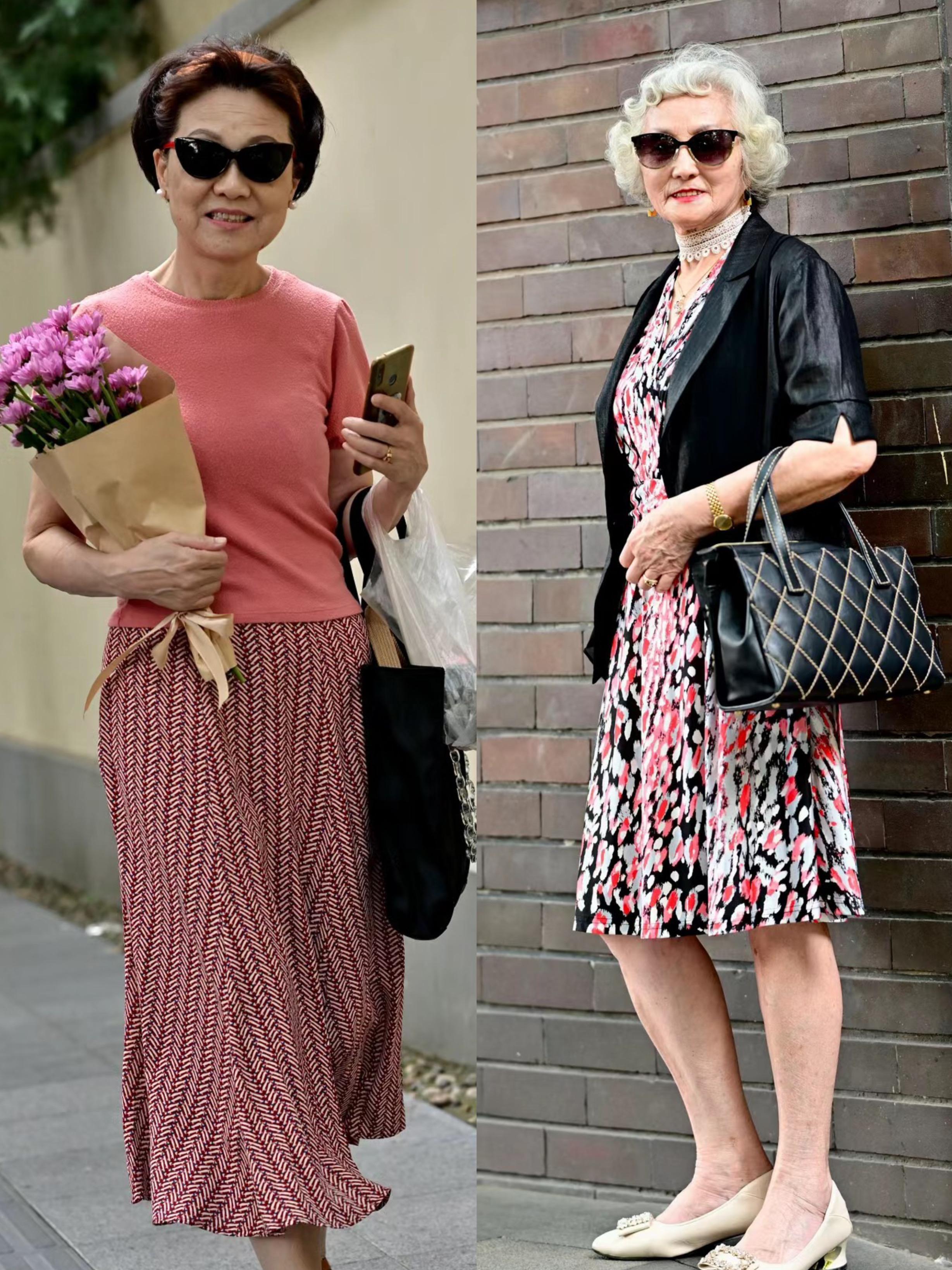 看街頭的洋氣奶奶,她們可以穿明豔的旗袍、也可以穿修身的連衣裙。