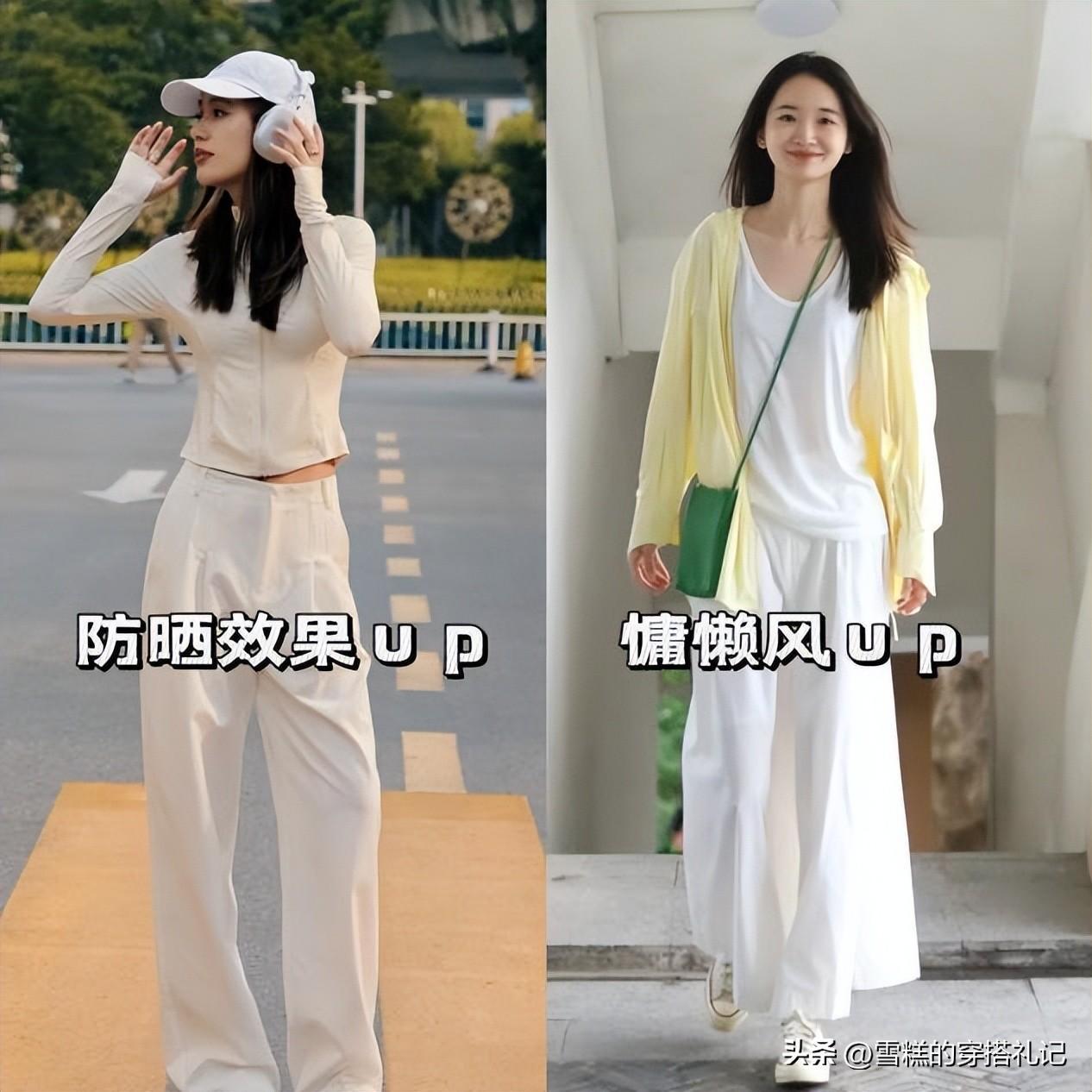 即便在夏天,穿搭也需要增加層次,我們可以選擇一件亮度稍微上衣進行提亮,顯得膚色更加白皙,配上稍微暗一些的山本褲,明暗結合,層次豐富,打造出纖細感。