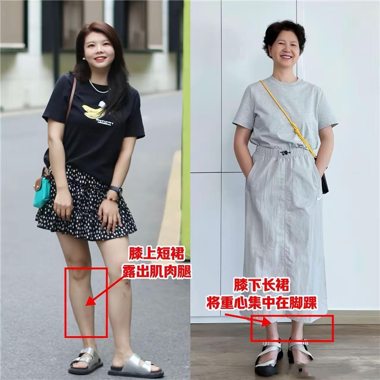 如果穿着超短半身裙,就很容易暴露體型上的不足,肌肉腿、或者O型腿、X型腿都無法掩蓋。過膝的半身裙,不僅可以將視覺重心集中在腳踝,也更加優雅、包容腿型。