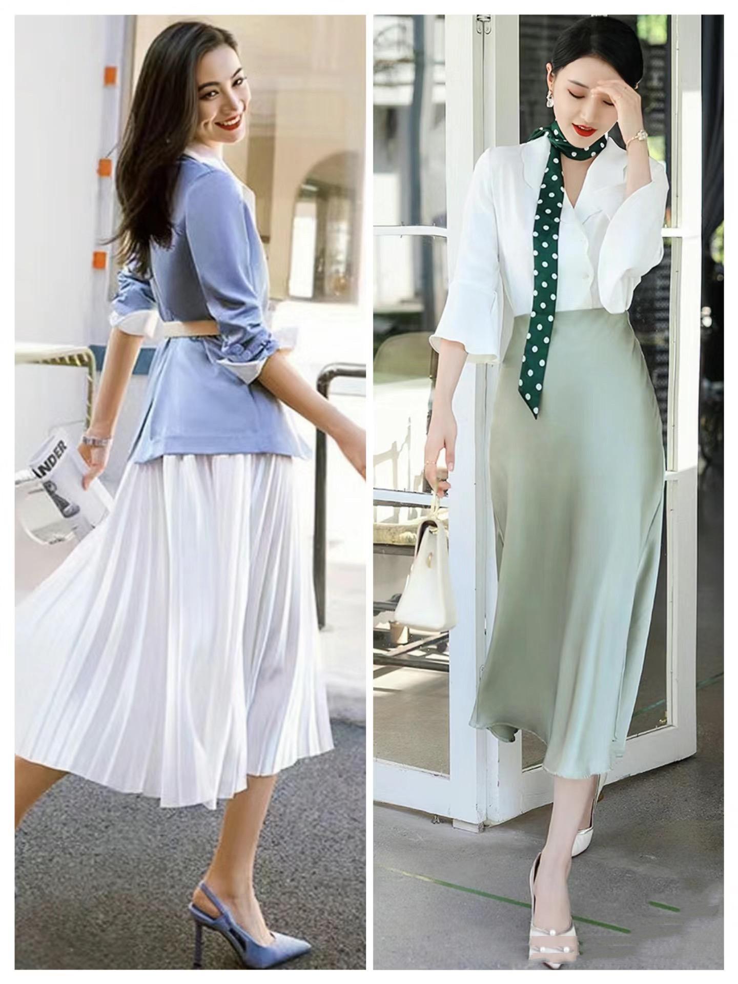 我們可以選擇高腰線、高收腰、大裙襬的過膝裙,不僅端莊大氣,也自帶優雅氛圍,顯得腰身纖細。也能覆蓋着小肚腩、大寬胯。