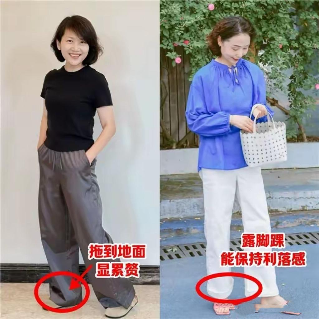 想把九分褲穿得體面大方、洋氣顯高,我們可以嘗試更加利落清爽的褲型,不要選擇太寬大、顯拖沓的大量感九分闊腿褲。