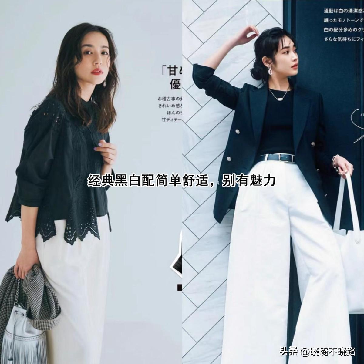 日本雜誌中的夏季搭配,很多都與黑白兩色有關,在簡單配色的基礎上,可以更好的營造比例,顯得整個人都非常的幹練利落,而且黑色和白色萬能百搭,完全不用擔心會穿出廉價感。記住,用大面積的白色和小面積的黑色組合,清爽舒適,而一旦黑色佔比更重一些,就能夠奠定成熟、內斂的個性。