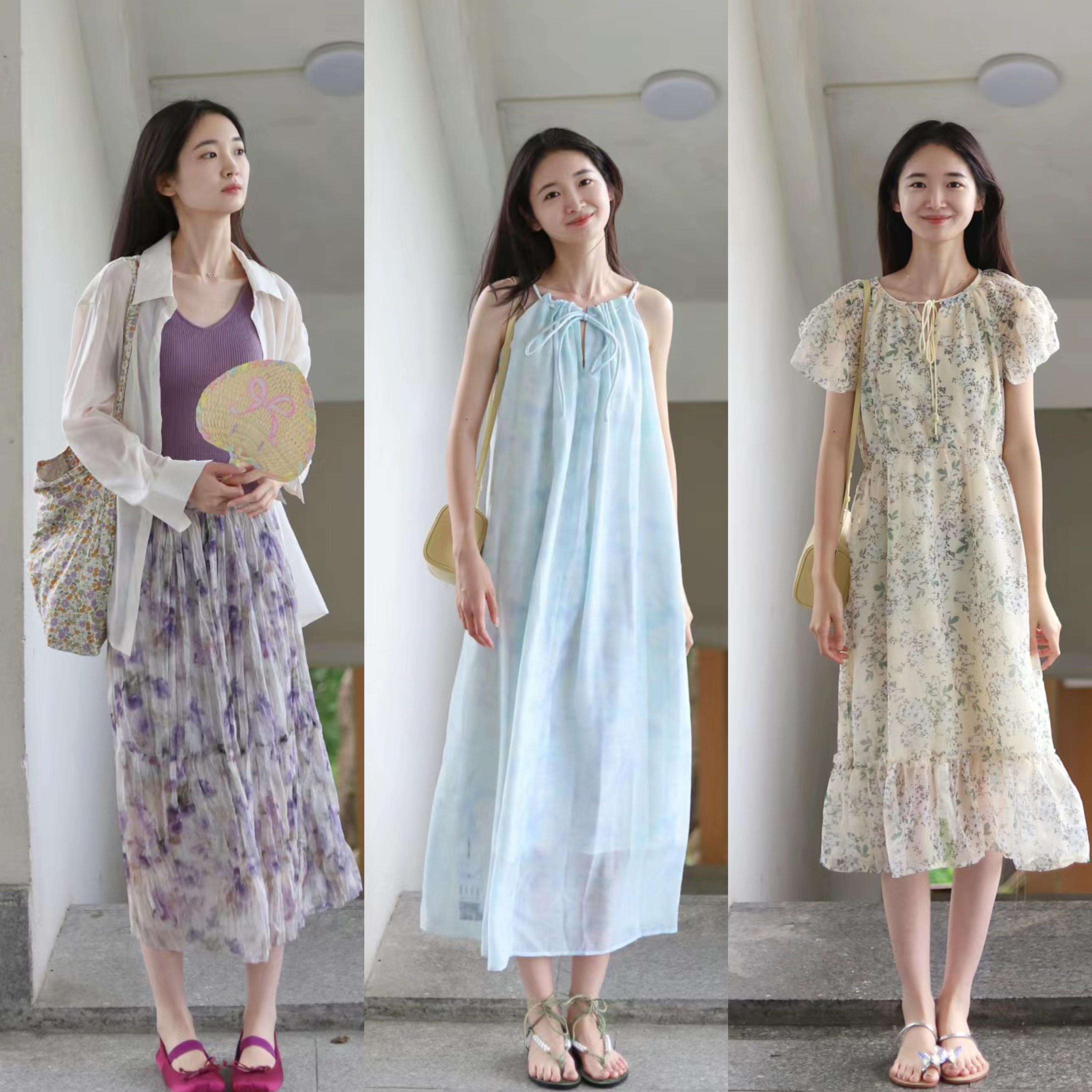 比如雪紡、蕾絲、真絲、雲紗等面料,都適合在夏天裏塑造溫柔感穿搭。浪漫飄逸的半身裙、或者連衣裙,穿上身都是超溫柔。