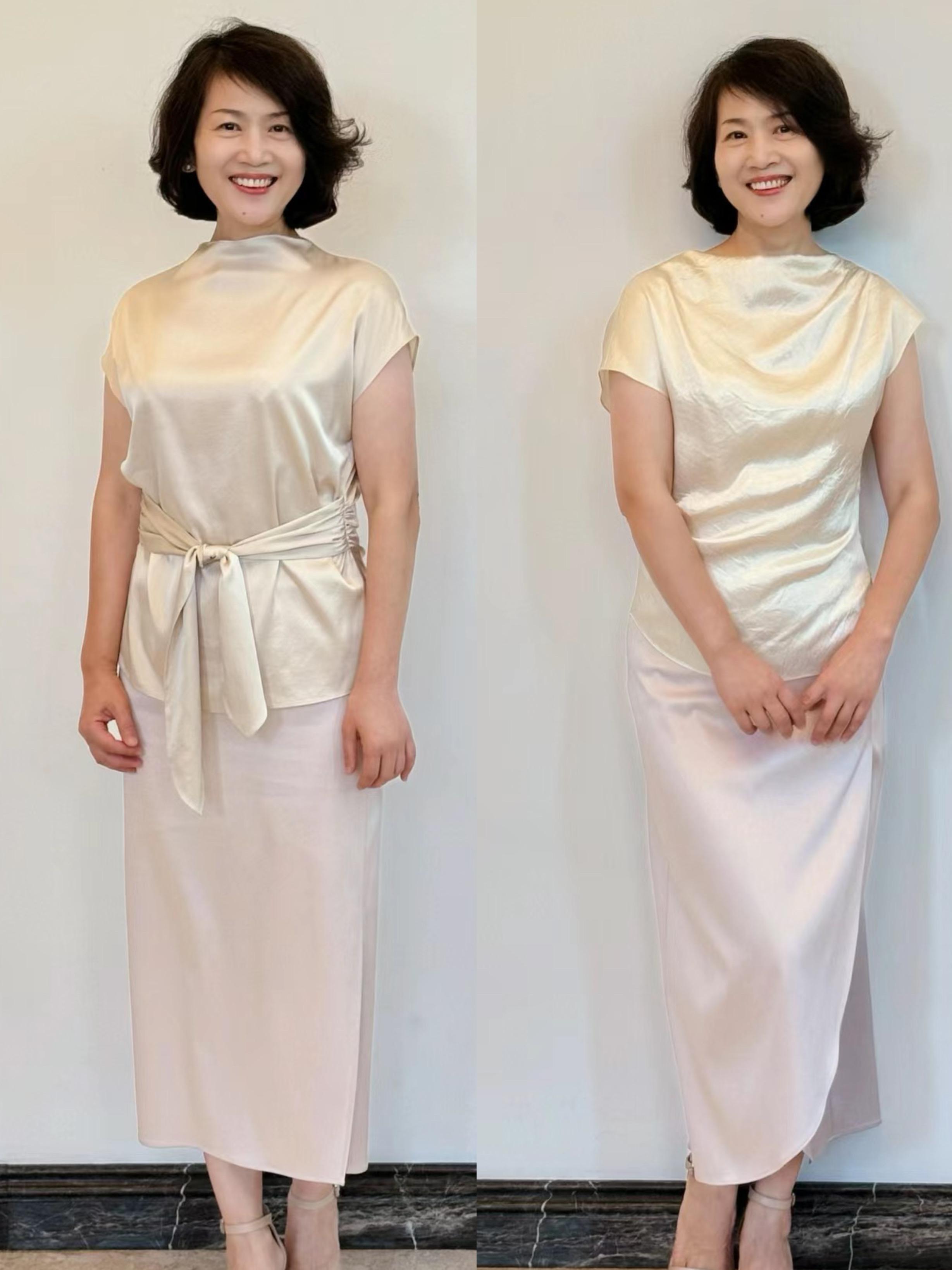 普通大齡女性,是沒有穿搭博主、影視明星一般的好身材的。所以醋酸裙的搭配,並無法照搬照抄。