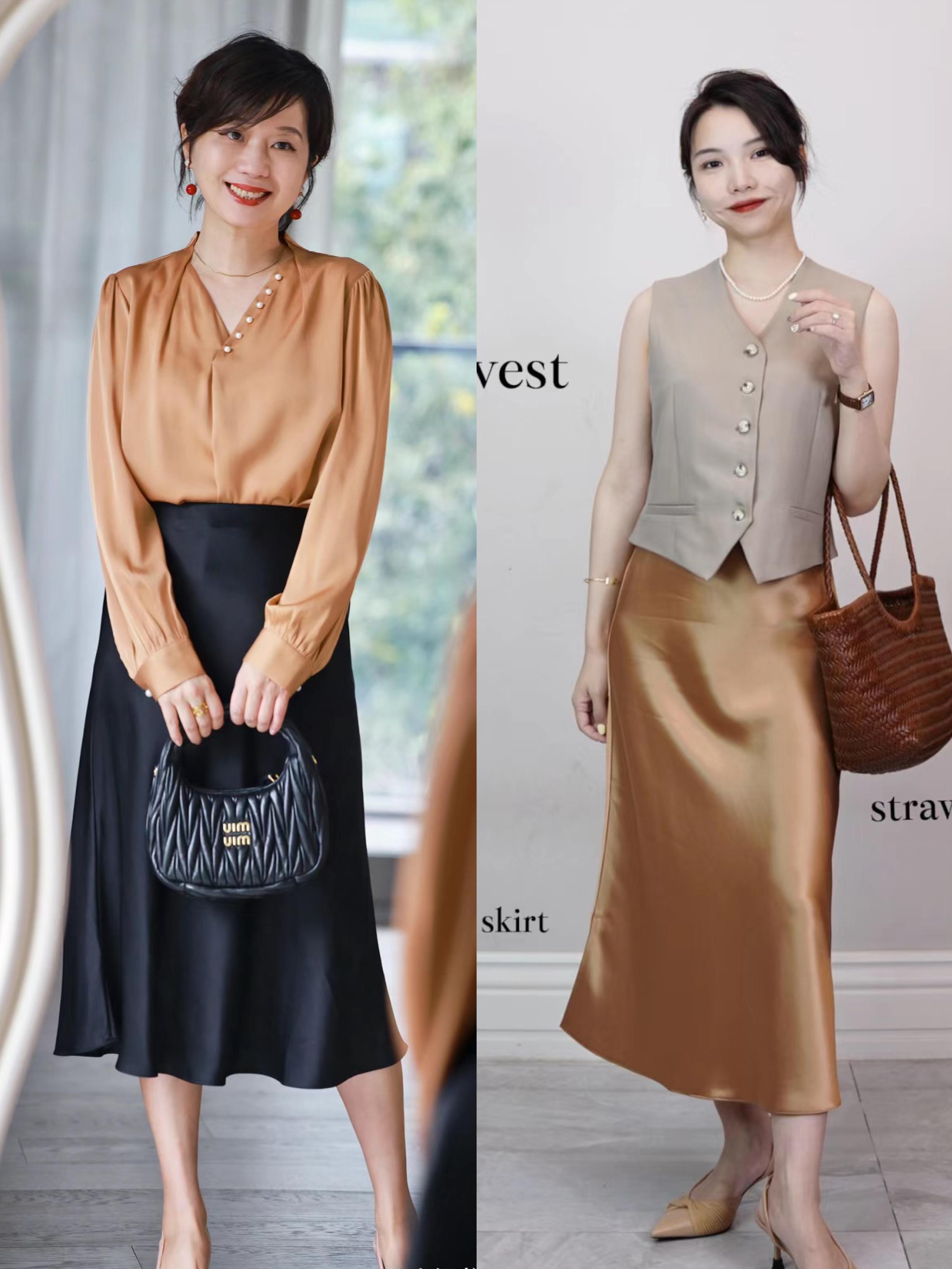 一條醋酸半身裙,如何搭配更出彩?其實醋酸半身裙可以配面料輕盈親膚的上衣,可以是莫代爾棉的T恤、微彈的背心、也可以是醋酸或者雪紡的襯衫。