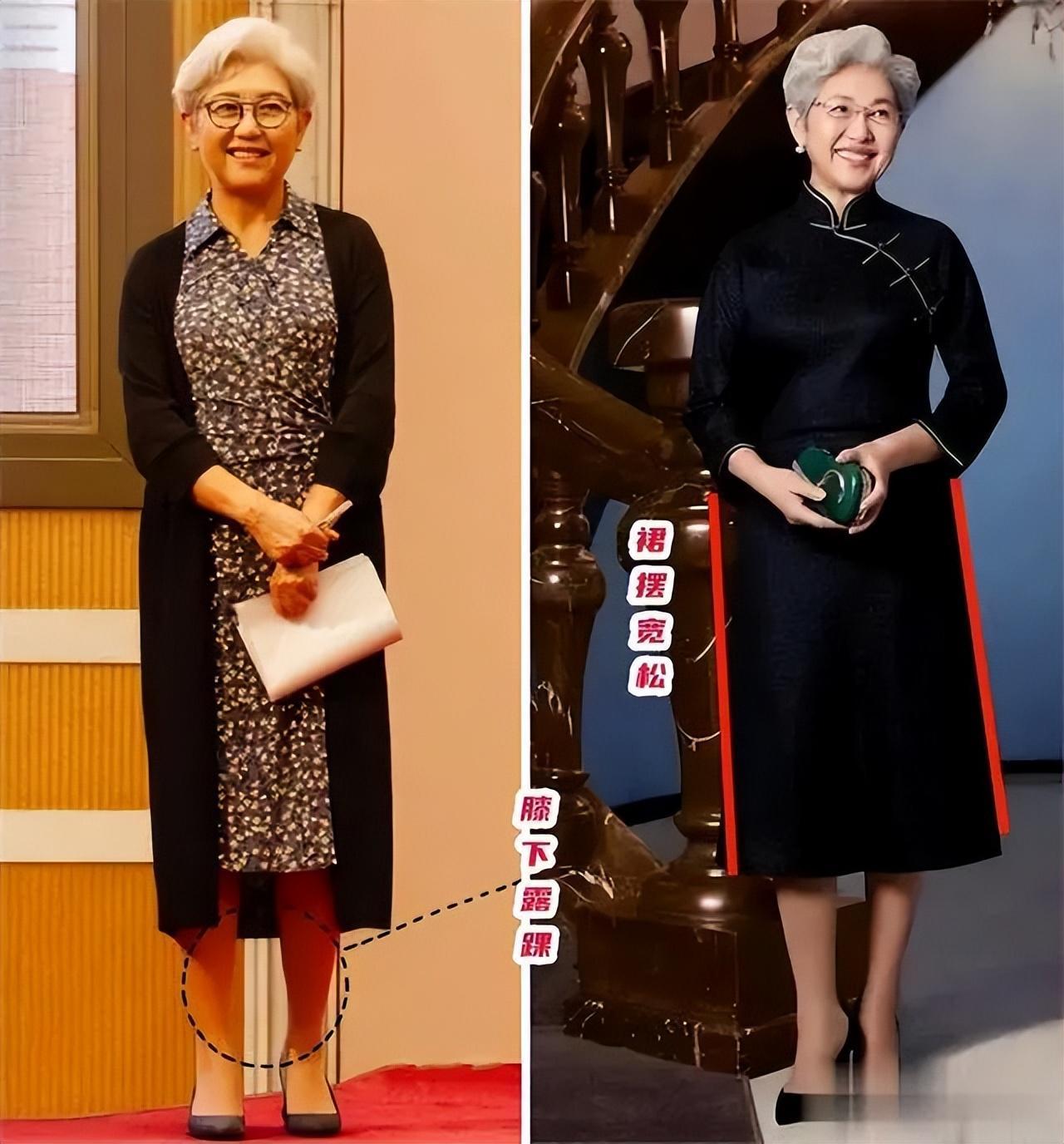 看傅瑩的打扮,小風總結了三點。就是白髮不染、裙不上膝、衣不緊身,真的是優雅又體面,這樣的裝扮,太適合大齡女性了。