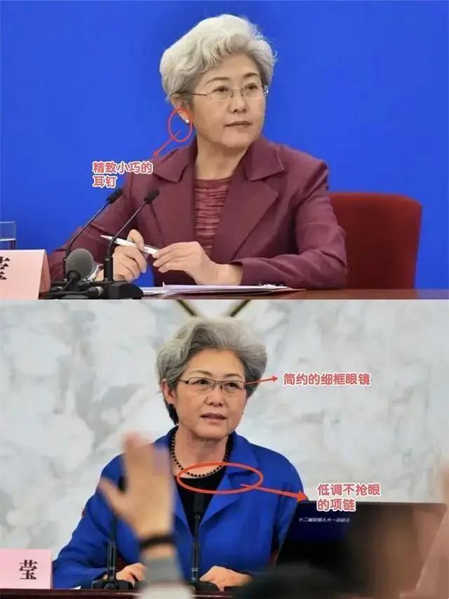 傅瑩的穿衣搭配,就透着一股書卷氣。胸針別緻、耳環精巧,清秀溫和的臉,帶上一副老花鏡,真的是太文雅了。