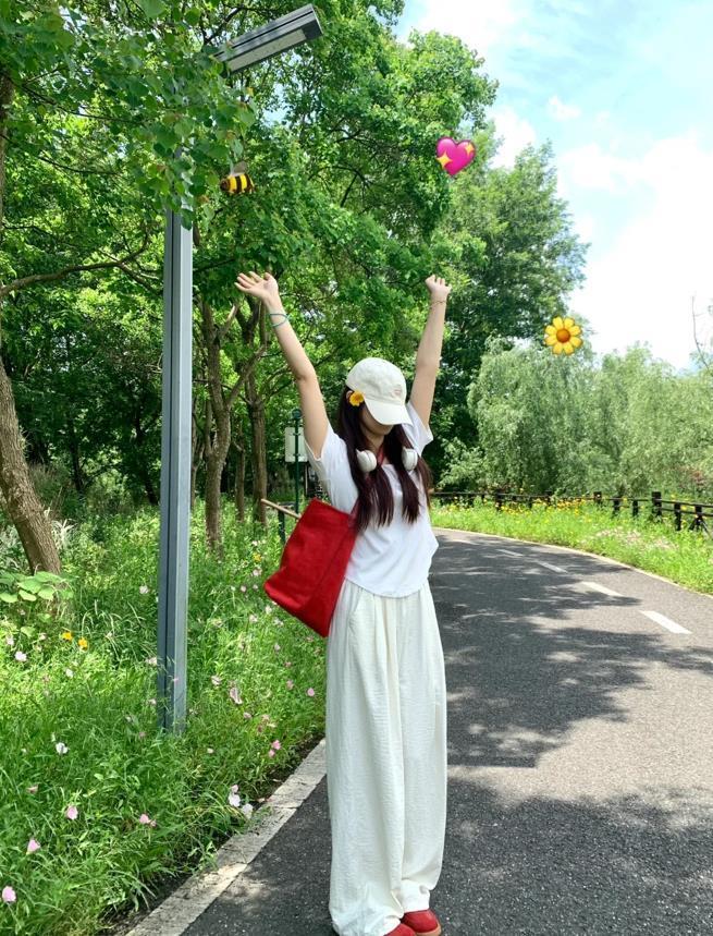 有沒有姐妹和我一樣喜歡這種乾乾淨淨的穿搭呢?感覺在悶熱的夏天,一身乾淨的白色可太合適了,褲子的面料很柔軟透氣,穿在身上非常舒服,奶白色很百搭,而且一點都不覺得透,關鍵是不顯胖,搭配起運動鞋和棒球帽,青春活力感十足。