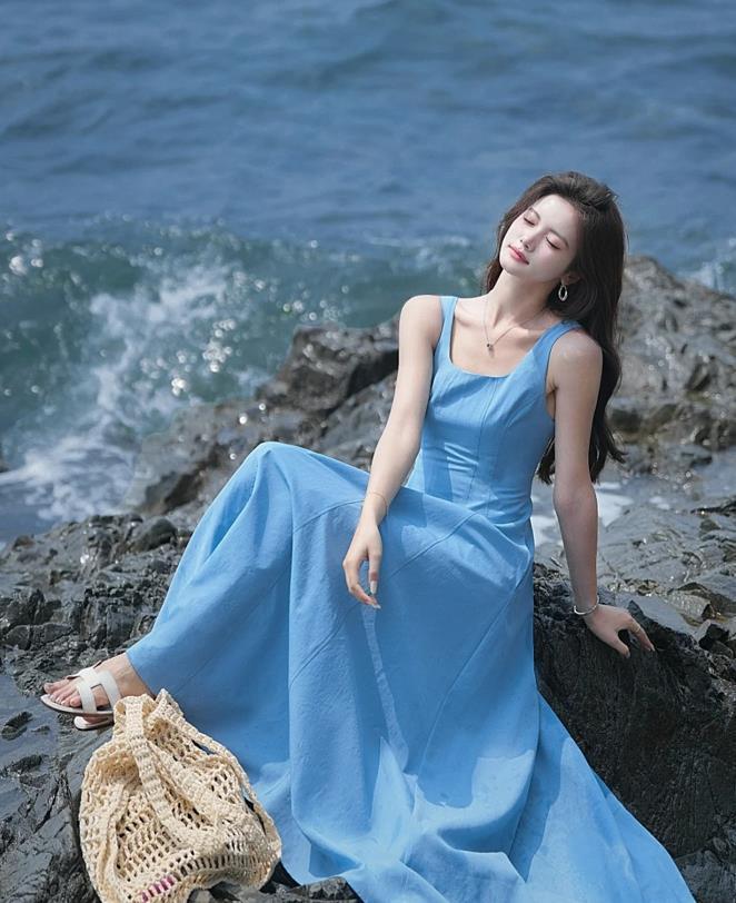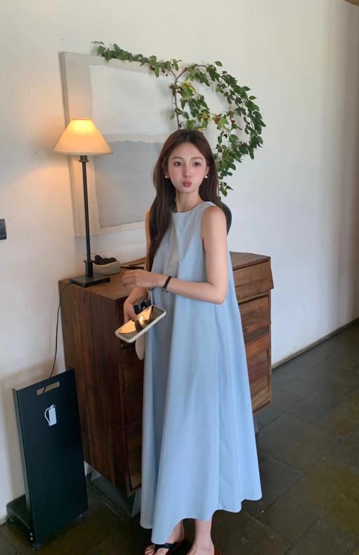 這個淡藍色的無袖連衣裙真的太好看了,帶着清冷氣息又十分溫柔的感覺,一片式寬鬆的版型,完全不挑身材的,穿起來就有種“紙片人”的既視感。而且裙子的長度也是剛好在腳踝左右的,並不會拉低個子和顯矮。
