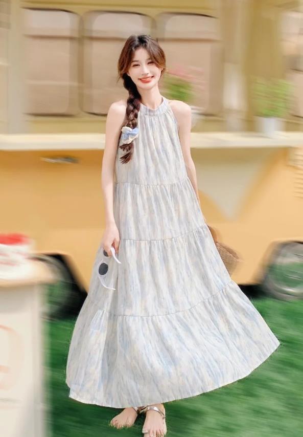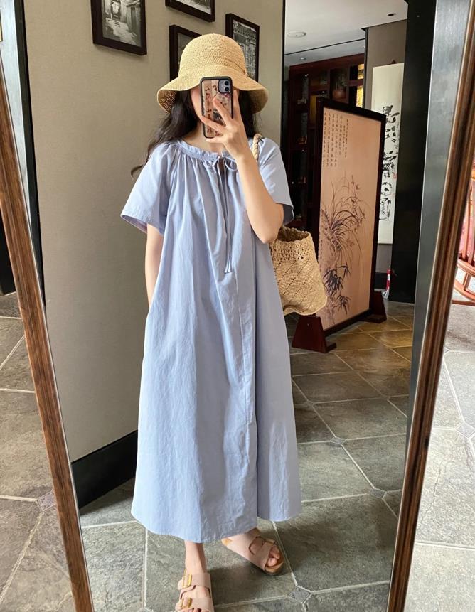 在夏季,說什麼也要爲自己選擇一件藍色系的連衣裙,這個顏色可以在視覺上起到降溫的效果,很乾淨清爽,裙子的版型是有些偏寬鬆的,這樣穿起來更舒適自在,也顯瘦,不管是出門逛街約會,還是度假,都能讓你展現出美麗的一面。