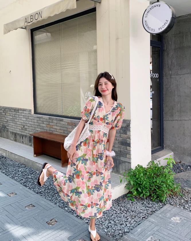 素雅的花卉圖案,浪漫又充滿清新,仙氣感十足,隨便配上一雙涼拖鞋就可以美美出門了。