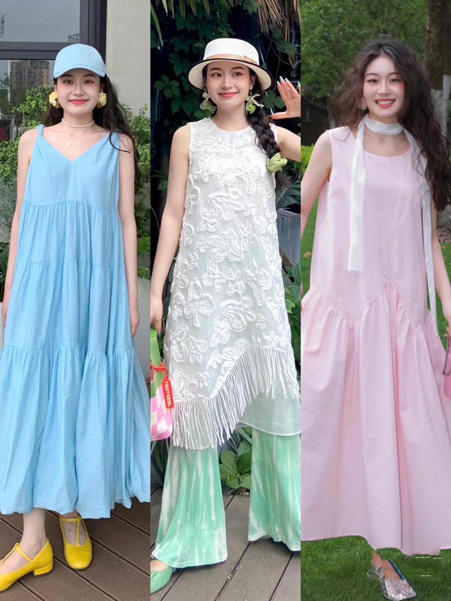 藍色系也屬於冷色調,可以把我們的肌膚映襯的更加白皙。穿着藍色連衣裙度假拍照的話,可以搭配及踝的長裙,文藝氛圍拉滿。