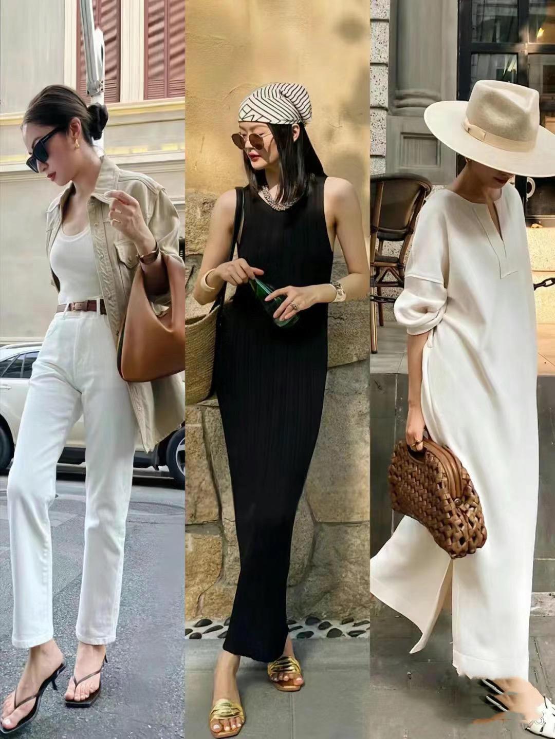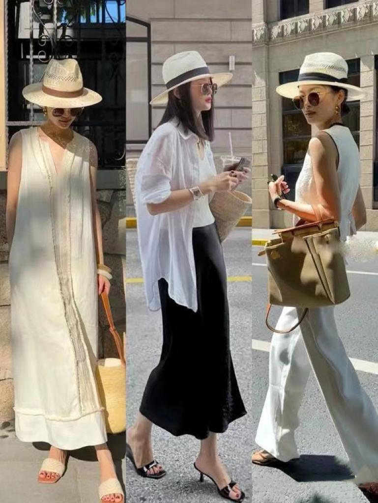 夏天的時候,我們可以選擇素色系的連衣裙、或者簡約的闊腿褲、半身裙,避免多餘設計,只保留原始的形態即可。就像寬鬆的白色V領連衣裙,寬鬆且及踝的裙襬、有一種文雅之美,很輕盈也很嫺靜。