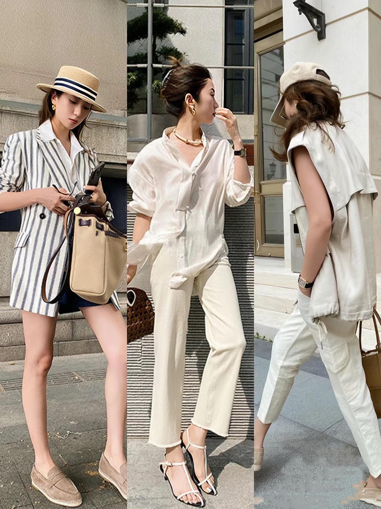 老錢風穿搭,特別偏愛白色系,它的配色更清爽,從來都不會讓人覺得花哨、凌亂。一條白色長褲,就可以成爲夏日老錢風穿搭的主旋律。
