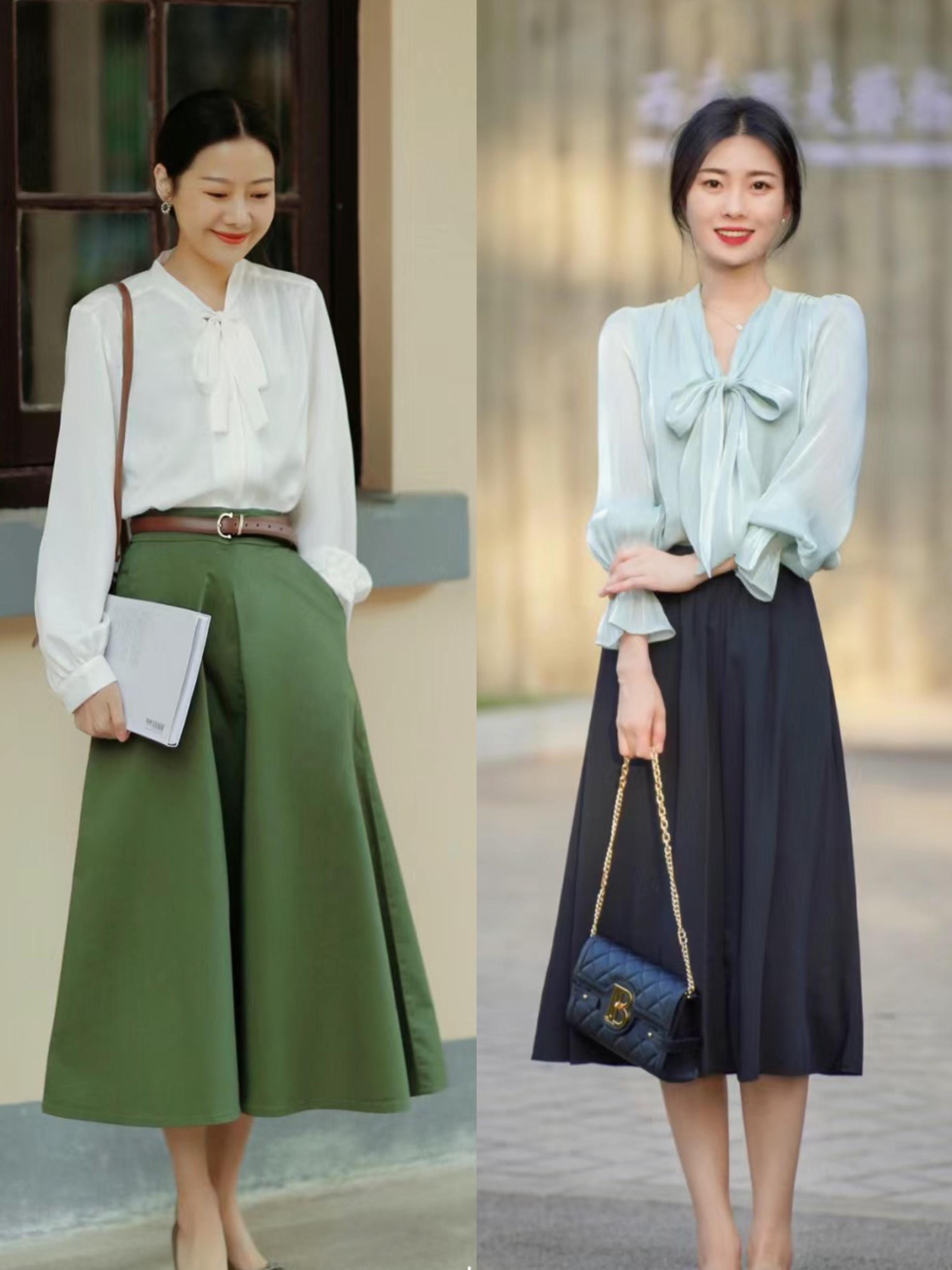 女人味濃郁、性別屬性明顯的穿搭,就更注重輕柔、垂順以及飄逸感。像這種裙襬輕柔的傘裙,也便更有女人味了。