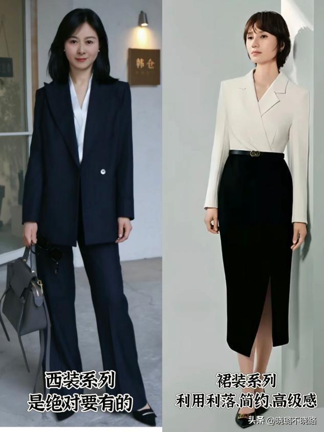 除了以上兩種風格狀態的體現,相信對於絕大多數的女性而言,在職場通勤的時候是需要展現出一定的氣場的,那麼就在這裏推薦大家這樣的風格狀態要展現的利落高級且很有直觀性的大方感,直接搭配西裝的套裝,又或者是將煙管直筒的長款裙裝以及褲裝與飽和度較低的簡約型上衣來進行結合。