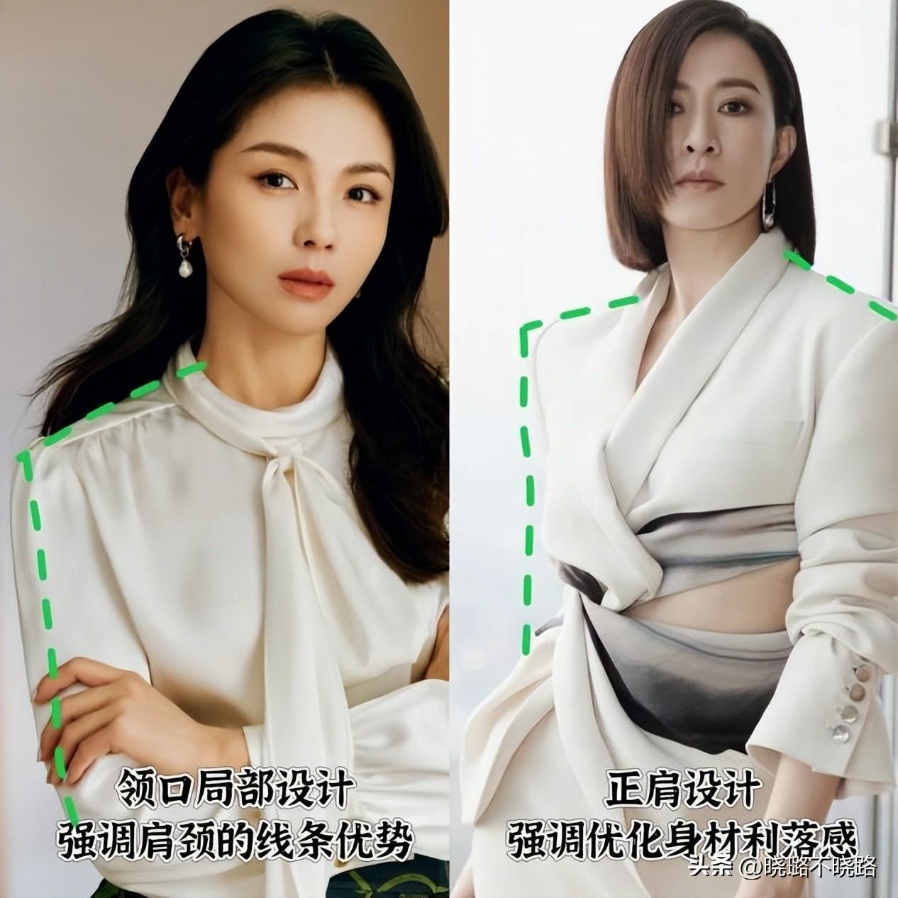 第3個技巧的話就建議大家可以像娛樂圈當中的女藝人們一樣,在搭配單品的時候可以多多的去選擇中間的單品優或者是具有墊肩的設計,搭配起來的時候可以讓我們整個上半身的線條走向非常的流暢好看哦。