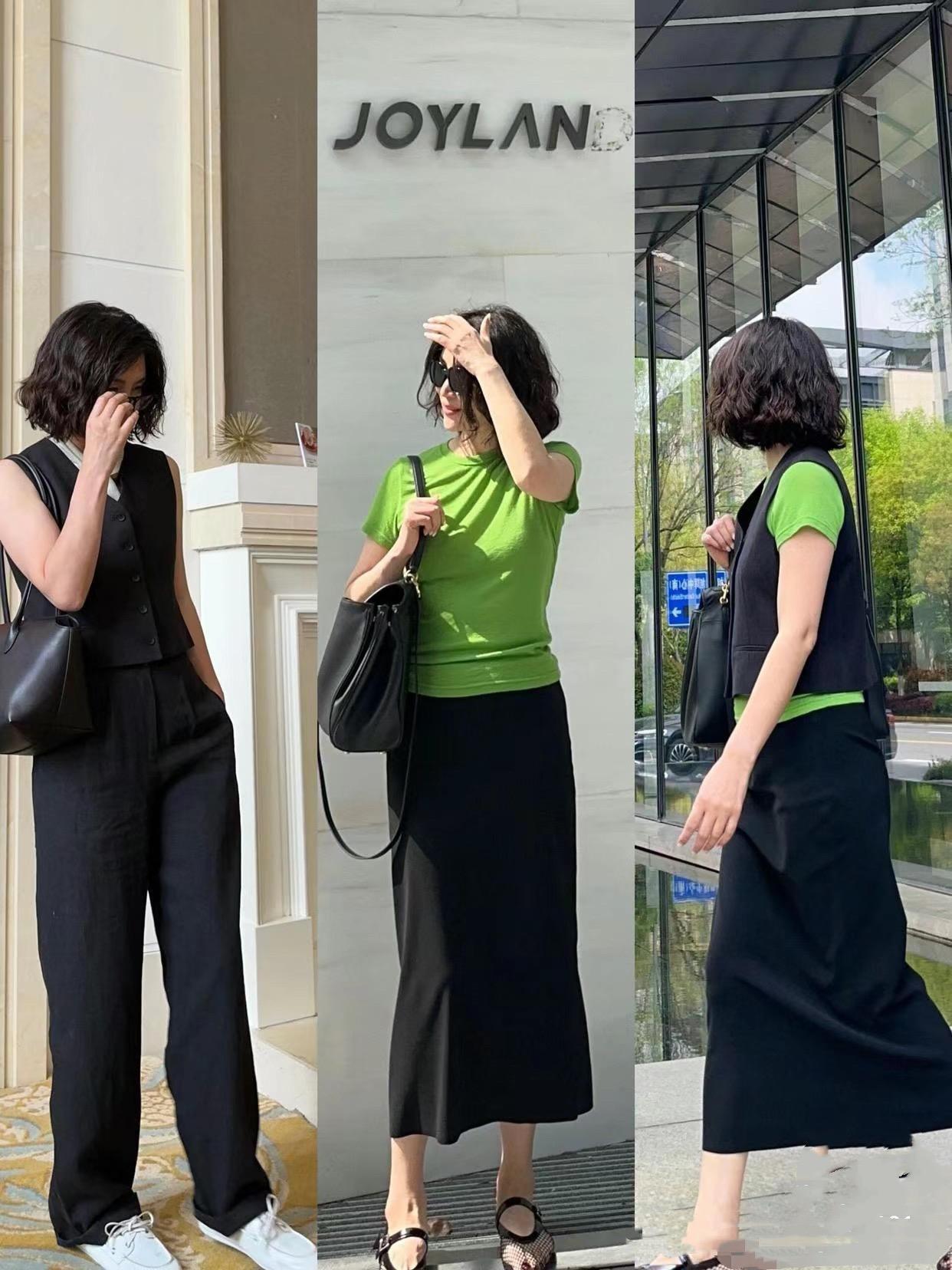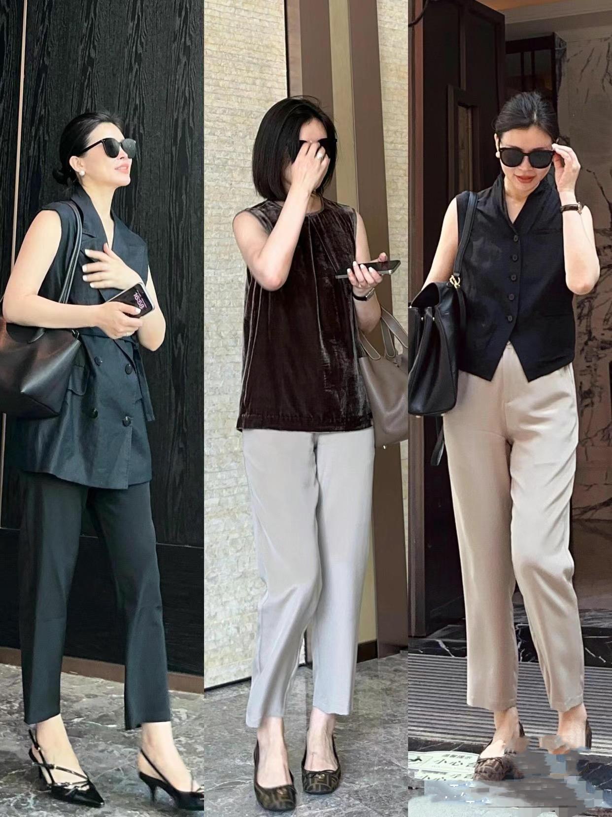 比如西裝馬甲+西褲+尖頭高跟鞋的組合,配比較大一點的托特包、黑超墨鏡的修飾,不僅增添酷感、也拉滿時尚氛圍,更是撐得起氣場。