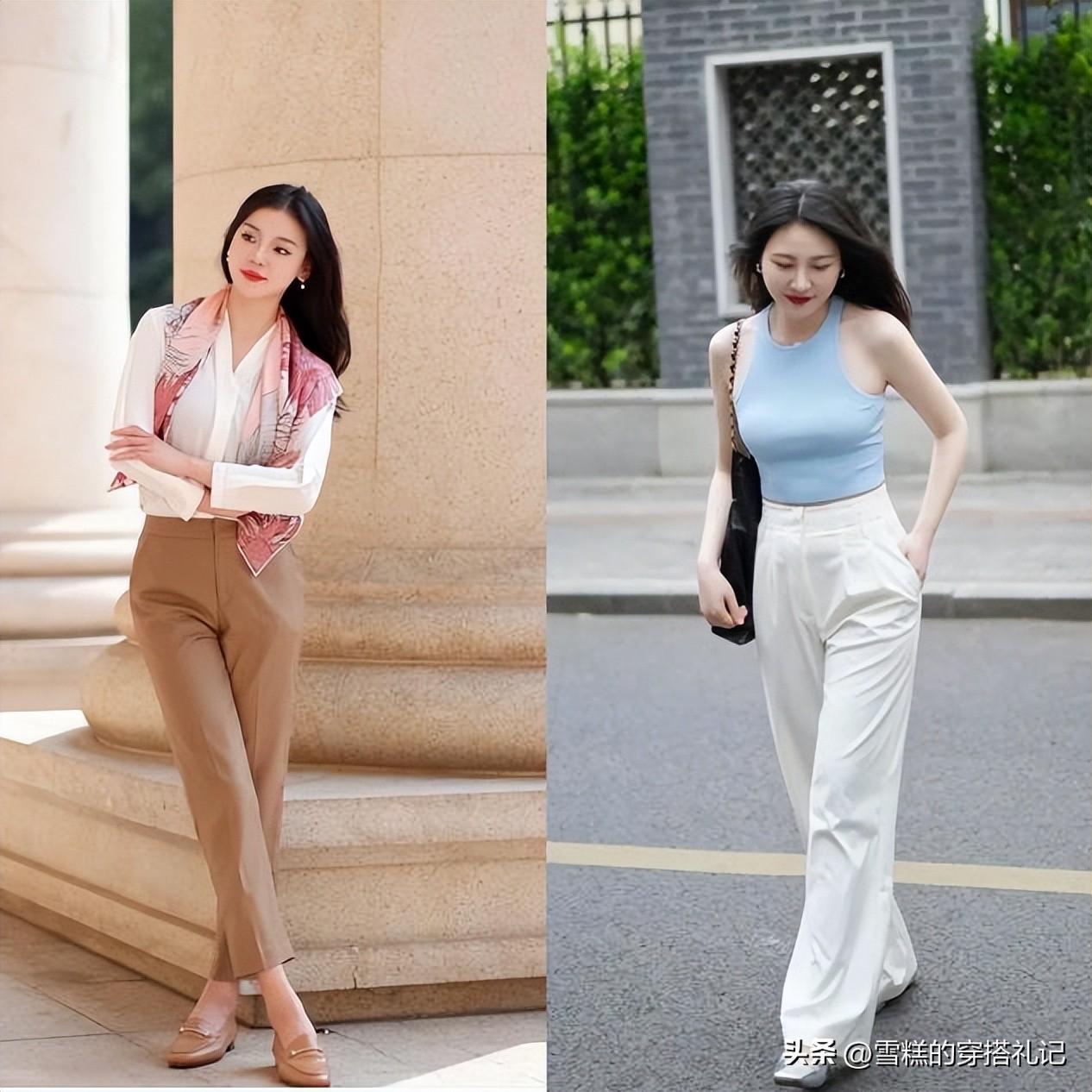 最後一種搭配在夏季當中真的是很推薦各位女性多多的進行選擇了,傾向於比較優雅又溫柔的山本褲,尤其是一些淺色調真的能夠將清新和減齡以及優雅感完美的展現出來,真的非常的適合出行遊玩以及在通勤的時候進行搭配,不少的上海女生往往都會選擇平底的奶奶鞋來進行組合。