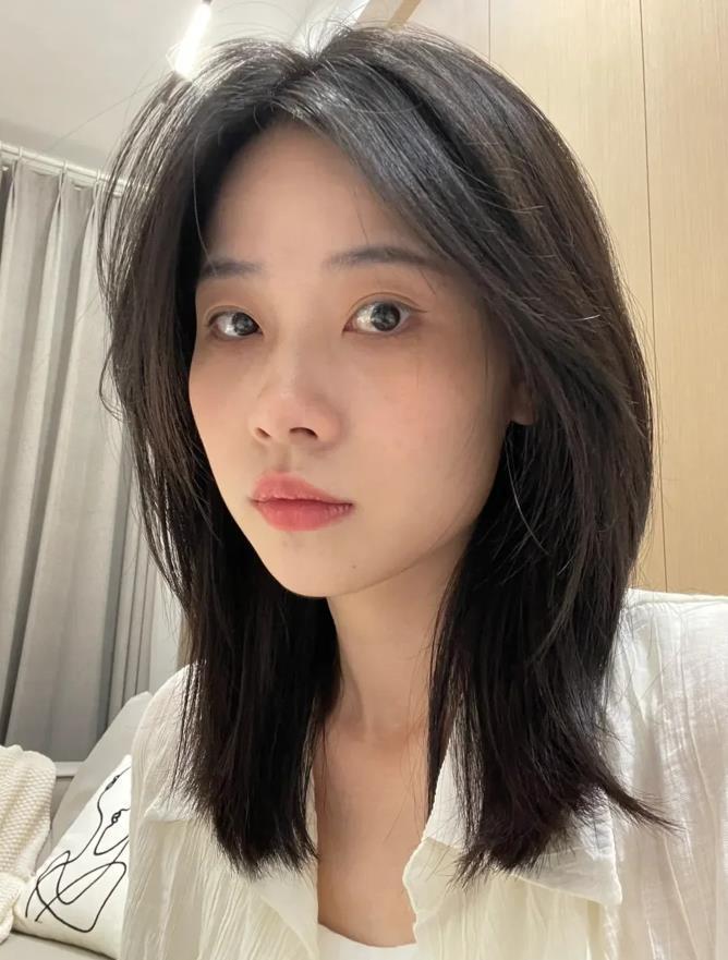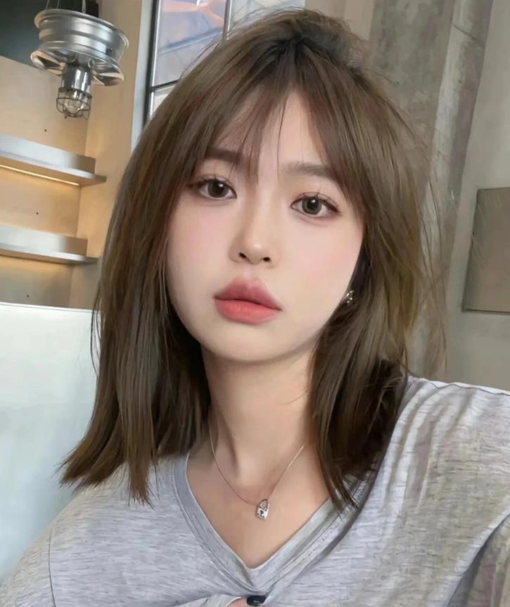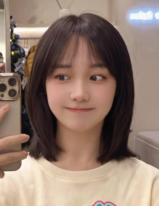 圓臉肉肉臉都合適的一款中短髮,搭配側分的劉海,簡直不要太好看了,超級減齡和顯嫩的,而且這個長度也是十分合適的,少女範十足。這款頭髮進行了層次修剪,可以製造出頭髮蓬鬆感,搭配法式劉海,真的太減齡了。