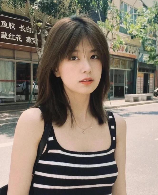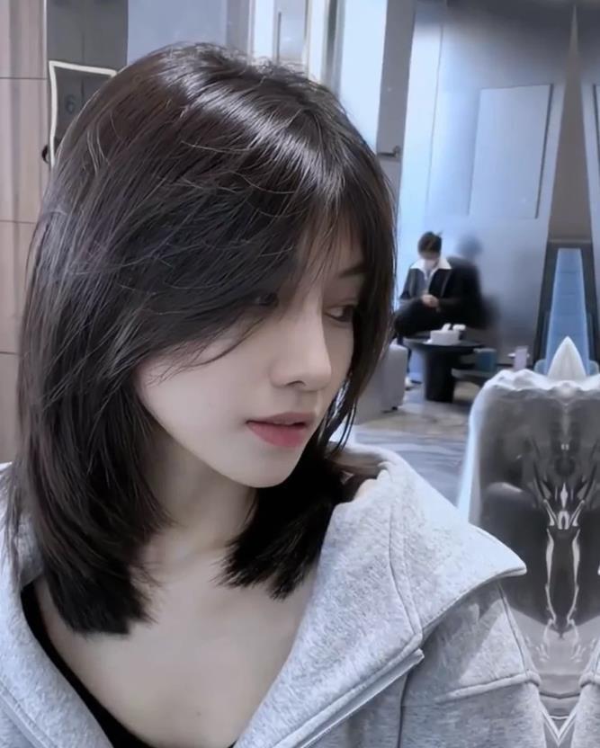 高層次的短髮,真的是今年很流行的髮型,空氣劉海的修剪,實在是太減齡了,搭配鎖骨長度的中短髮,實在是太好看了。視覺上會給人一種身材變高挑的效果,視覺上臉型也被拉長了不少。