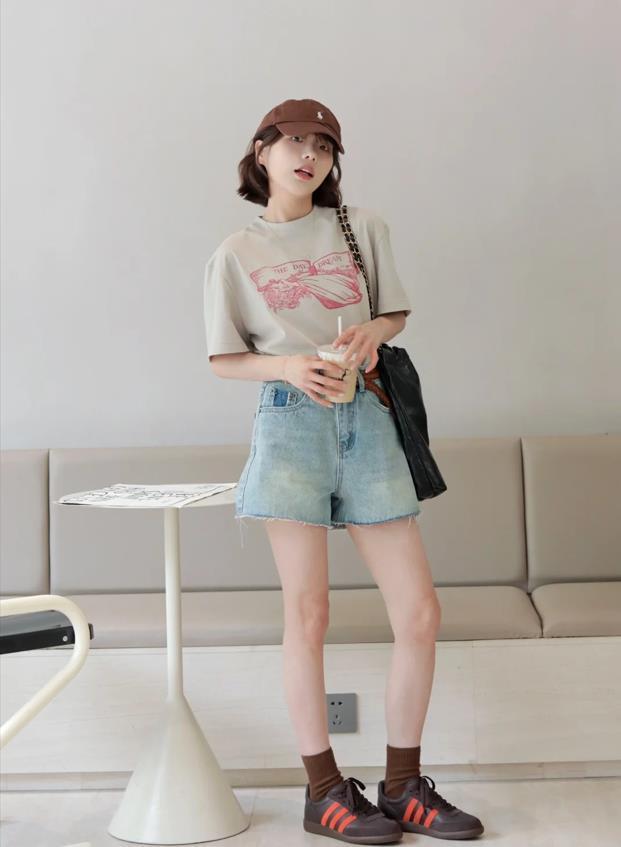 夏天,小個子女生該怎麼去搭配呢?我個人建議你可以嘗試上短下短的組合,當然了,如果你腿部比例較好的話,這麼穿當然是沒有問題的,能輕鬆提高自己的身材比例,也顯腿長。簡單的短袖t恤+牛仔短褲,很適合夏天的經典穿搭,搭配咖色棒球帽,很好增加了精緻度和時尚感。