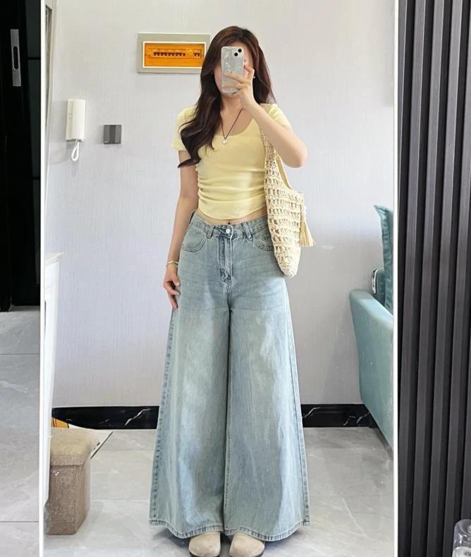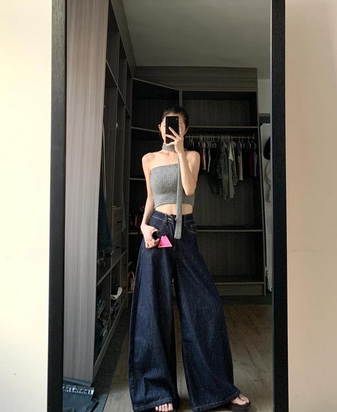 上窄下寬,這對於下身胖的身材可太顯瘦和藏肉了,也巨優化身材比例的,上衣選擇一件背心,搭配牛仔闊腿褲,很遮肉顯瘦,完全不挑身材的款式,也很好配衣服,梨形身材穿上就對了。