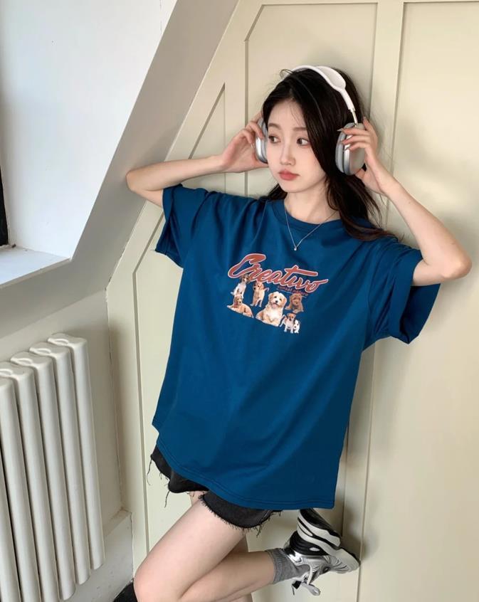夏天一定要試試藍色,真的非常顯白和襯膚色,寬鬆的版型,對身材起到了很好的包容性,也藏肉舒適。T恤長度有些過臀,這對於臀部大和大腿粗的身材很友好,與黑色牛仔短褲相配,一整套俏皮可愛,可鹽可甜。