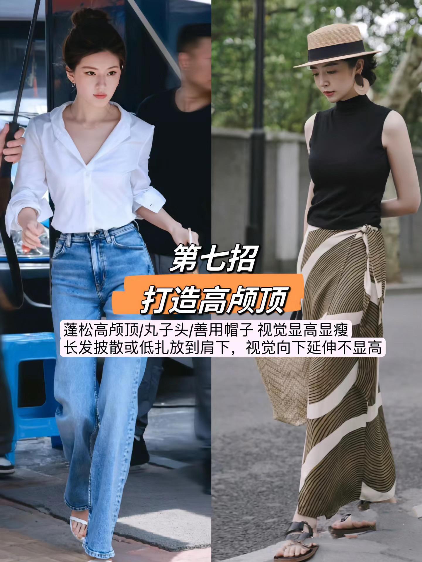 打造高顱頂,也是小個子視覺顯高的途徑。比如蓬鬆的高顱頂、丸子頭、增高的帽子,都可以呈現出一種更直觀且顯高的效果。