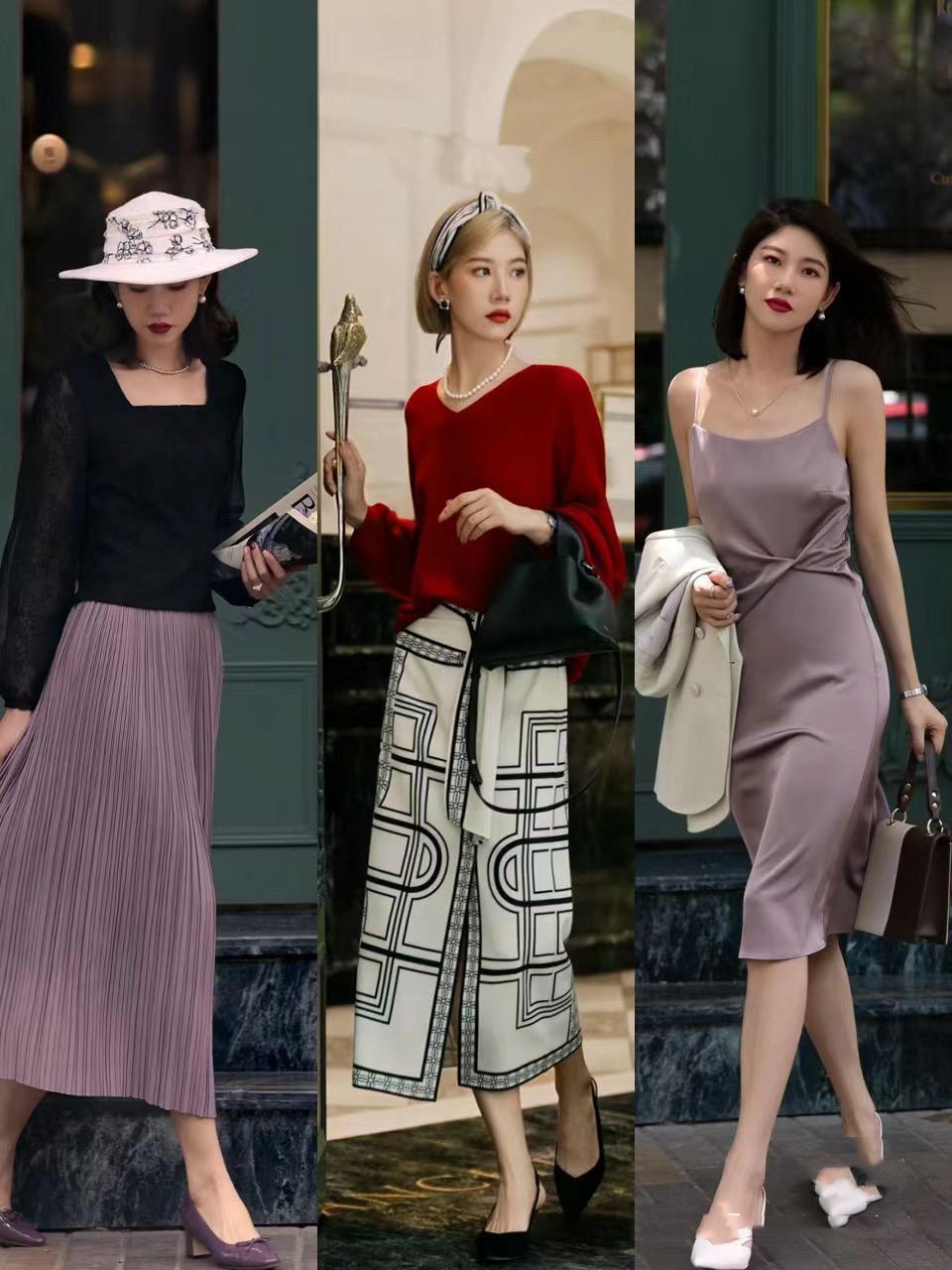 飽和度更高的深色系,就更加適合復古氛圍拉滿的貴氣感穿搭。比如酒紅色、黑色、茄子色,都屬於辨識度高、且顯貴的顏色。