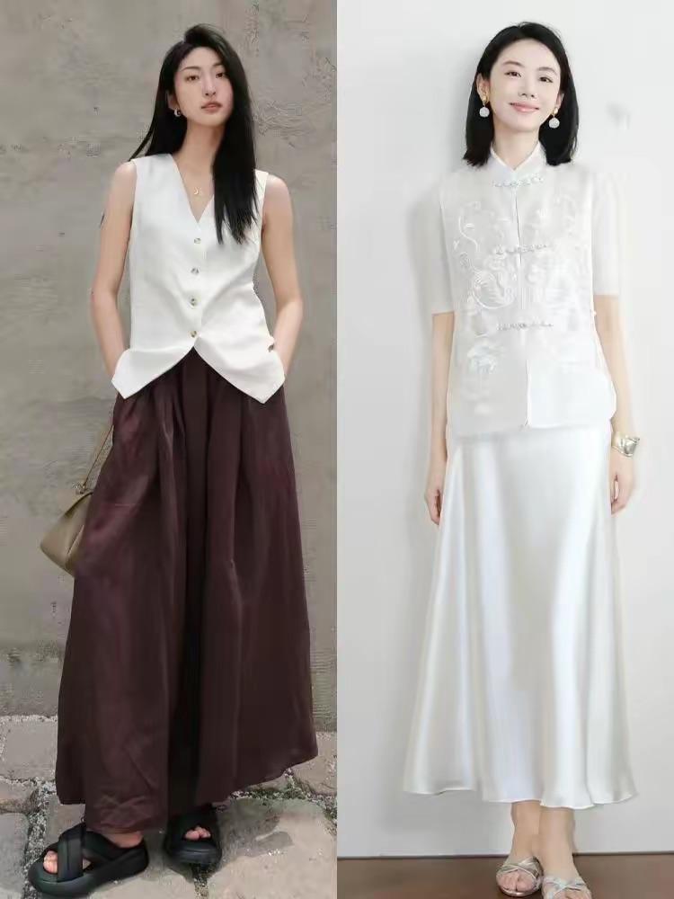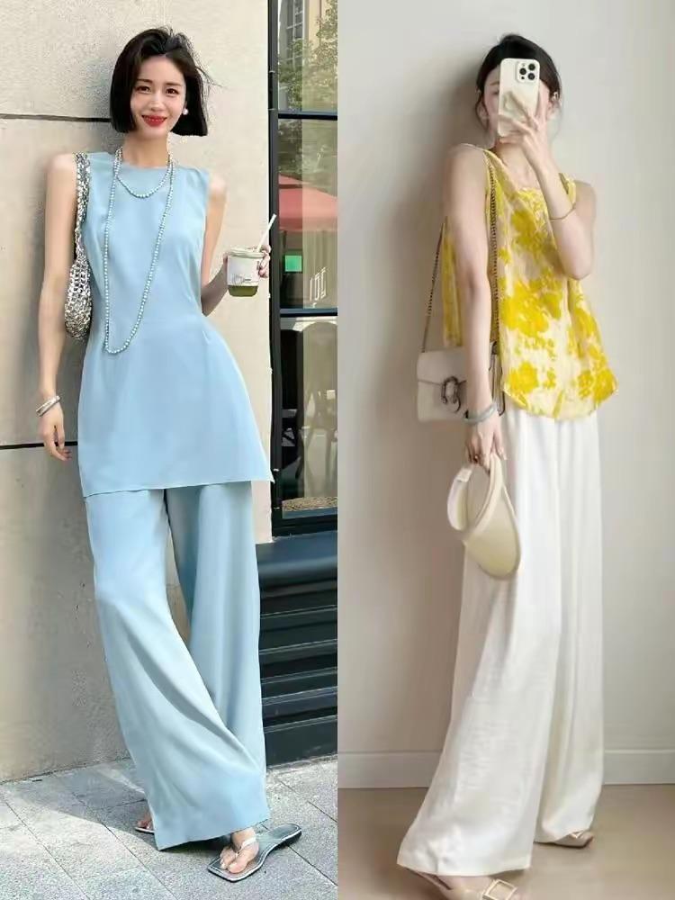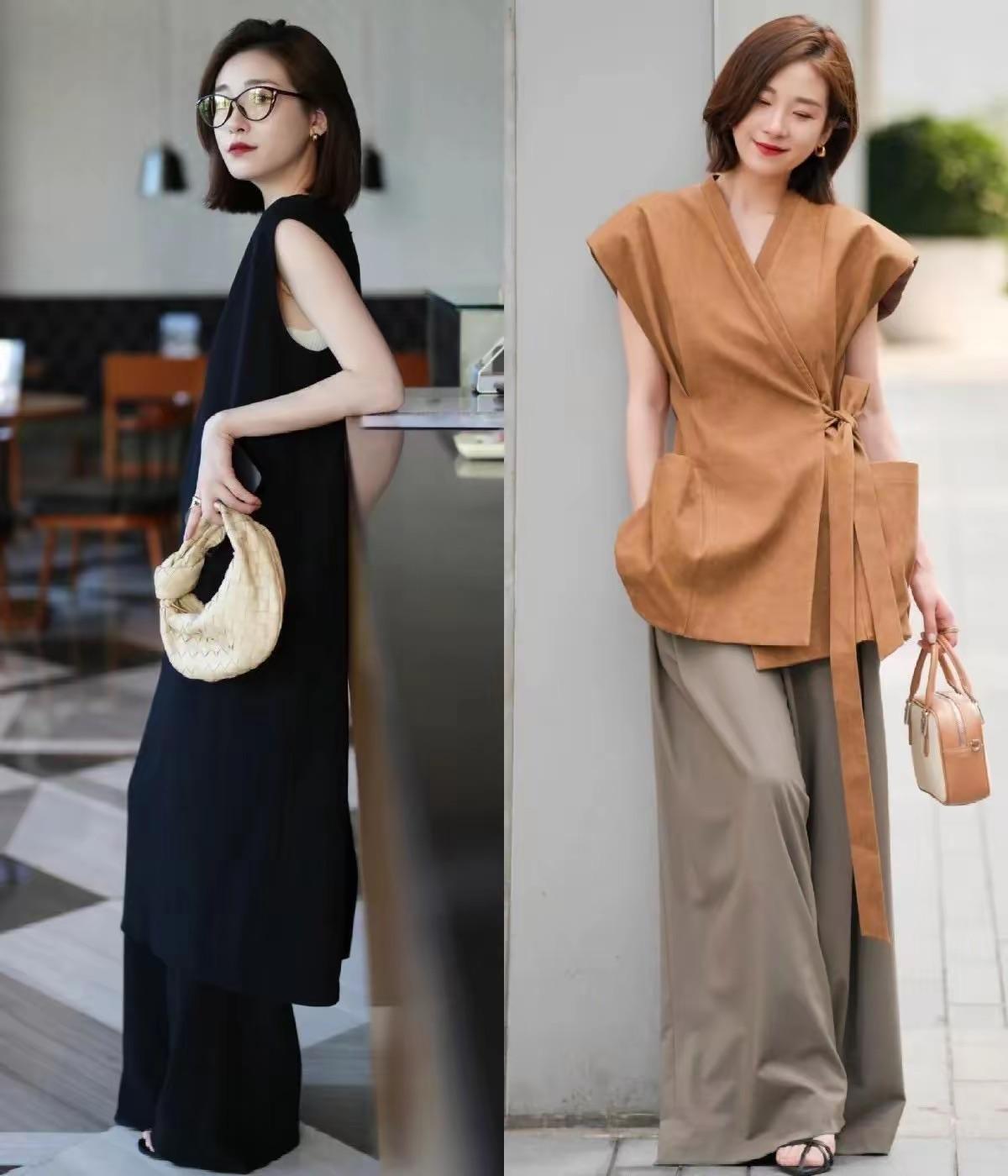 包容性更強的無袖背心,配寬鬆的闊腿褲,爽朗又大氣。