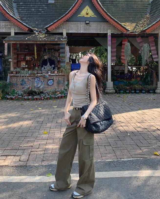 這個夏天,你說什麼也要爲自己入手一款工裝褲,實在是太帥了,與黑色背心相配,這麼一整套看起來又美又帥。休閒又洋氣,上緊下松的組合,對於上身比例纖細的身材十分友好,顯瘦效果簡直不要太好了。