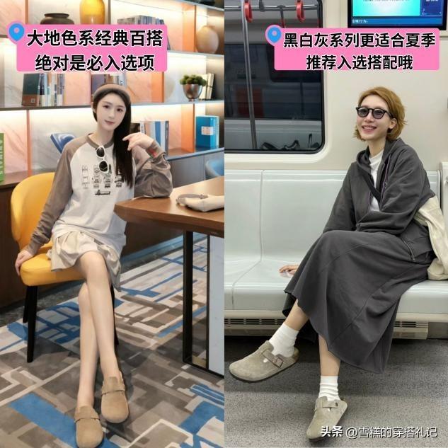 第2種露出來腳後跟的鞋子就是在當下非常風靡的勃肯鞋了,這一款鞋型的話,其實相比較於上一個洞洞鞋而言,它的低調感還是比較明顯的並且百搭性真的很足,針對於每一個年齡階段以及每一個風格走向都可以很好的將其教育和結合。