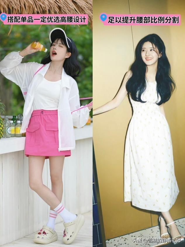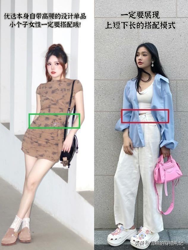 想要體現一個標準又好看顯高的身材比例優勢的話,那麼所搭配的三款單品都需要展現出它本身的優勢所在,這個時候就建議大家上衣可以選擇一些短款設計,並且結合高腰的下身單品,且兩者是屬於異色調的展現形式。