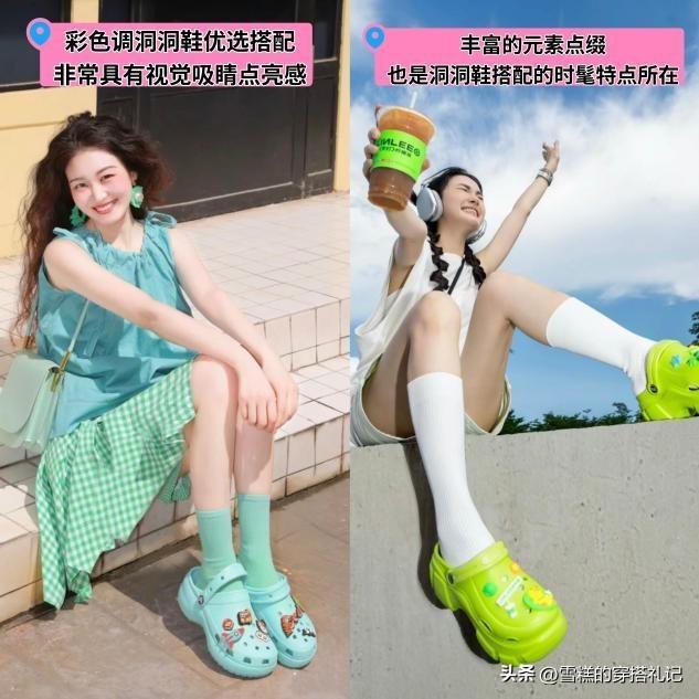 洞洞鞋的入選標準其實更推薦各位女性在夏季當中優先於運用彩色調,從視覺上先起到一個非常提亮的效果,並且它本身是能夠帶一些比較豐富的裝飾,千萬不要選擇光禿禿的版型,那樣的不太好看也不太時髦。