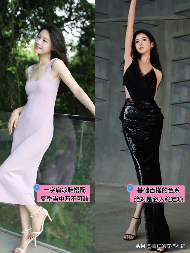 露出腳後跟的鞋子在進行搭配的時候照樣也可以展現女性的魅力和優雅感,在這一點上推薦大家優先選擇具有增高效果的一字帶涼鞋,並且搭配短裙以及一些優雅的長款裙裝與其進行結合是最具有優勢,最具有視覺展現力的。