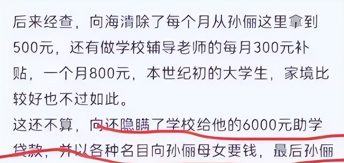 他明明拿到了助學貸款,卻瞞着孫儷。明明每個月都給他500塊生活費,自己還有300塊的補助,加在一起800塊的生活費,在當時那個年代比一般的家庭孩子都要高。