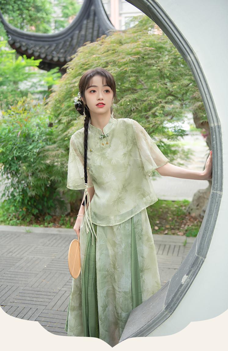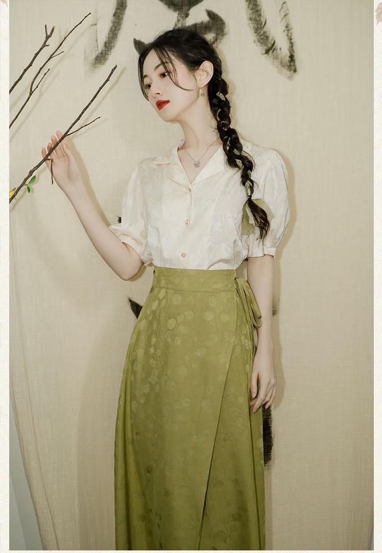 馬面裙和襯衫不能選雪紡的,輕飄飄的沒有質感。