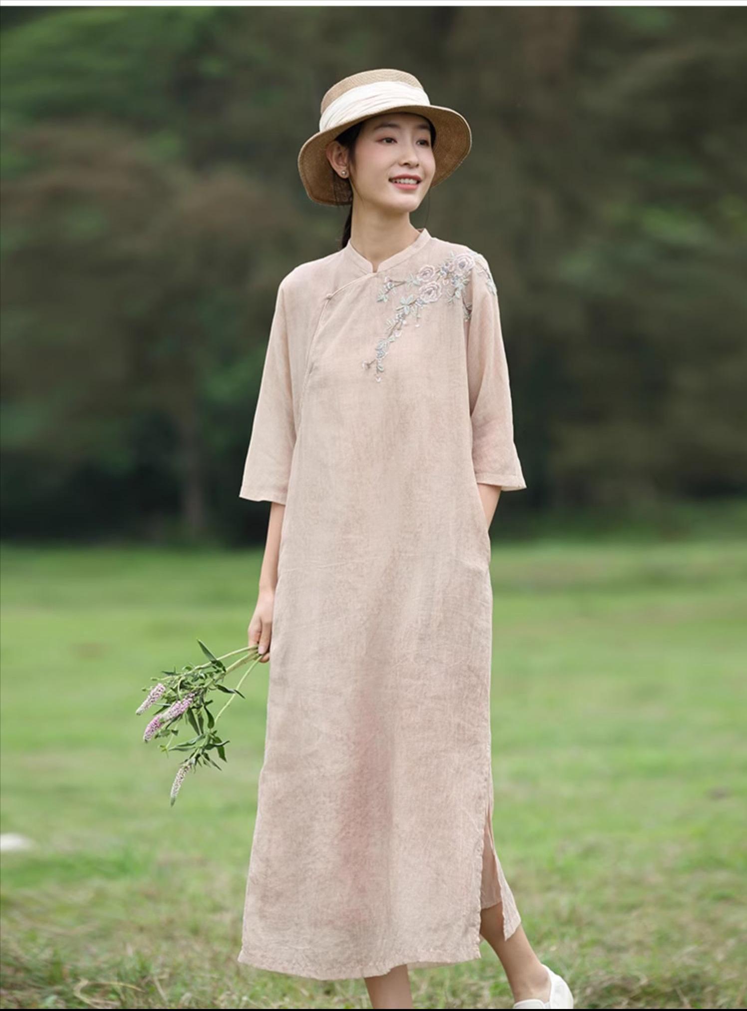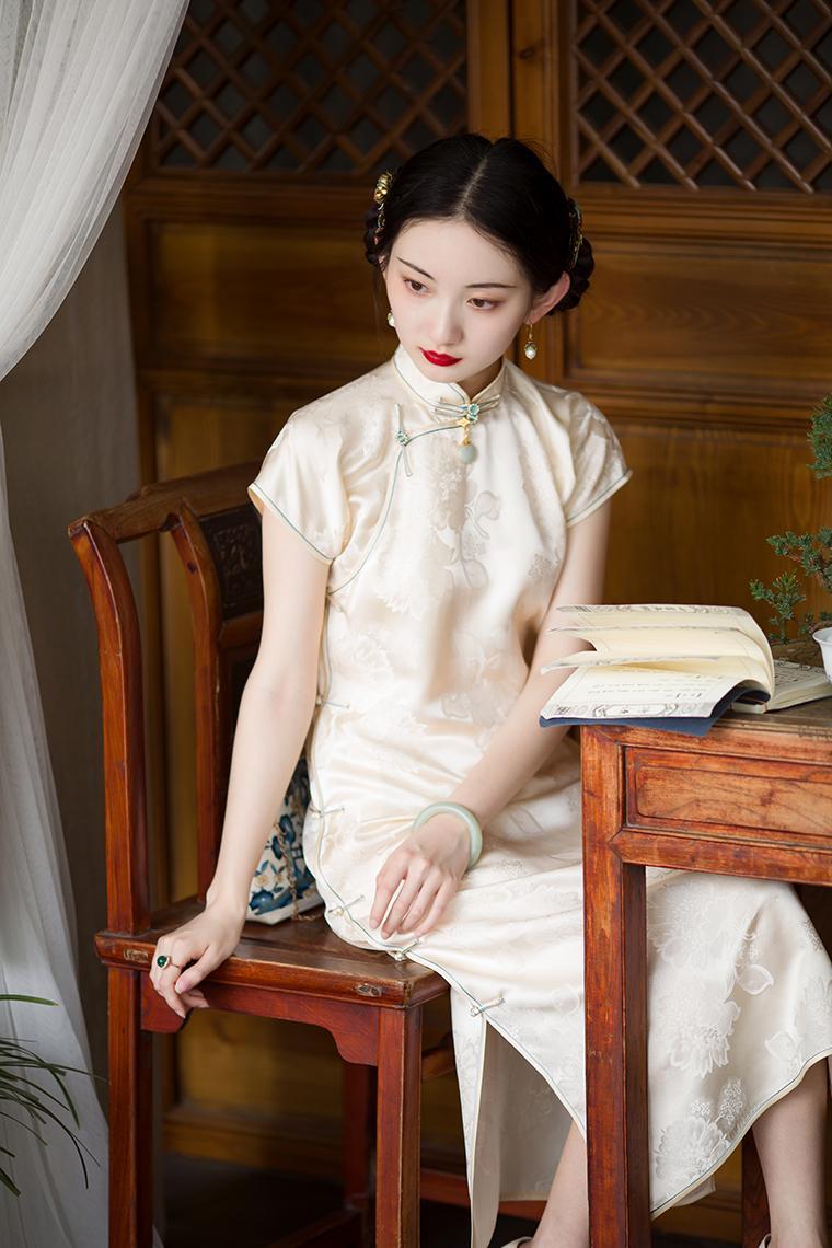新中式非常看版型,有些奇奇怪怪的造型,一看就非常踩雷。其次看面料,如果你選的旗袍或唐裝,最好選如真絲、宋錦、綿綢、緞面,保留傳統元素如立領、盤扣,但剪裁剪裁更貼合現代身形,長度至小腿或膝蓋,既顯端莊重又顯精神。